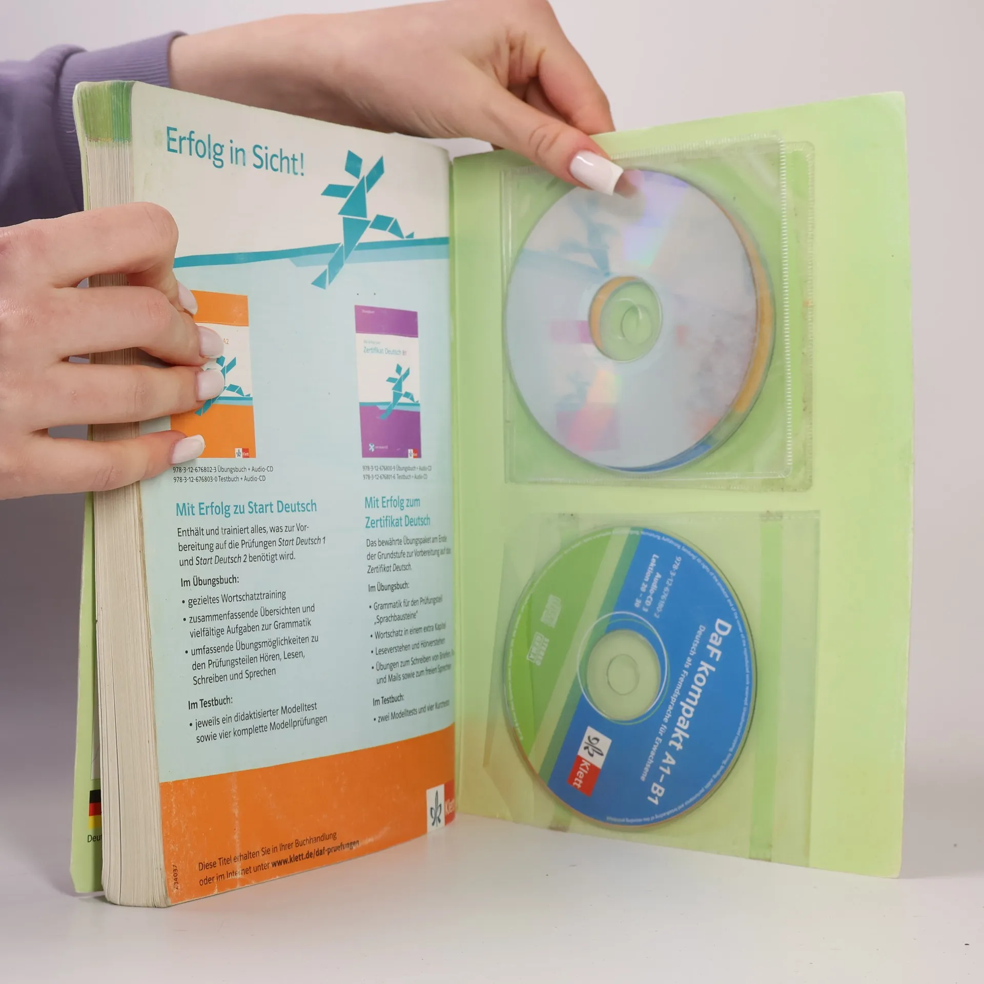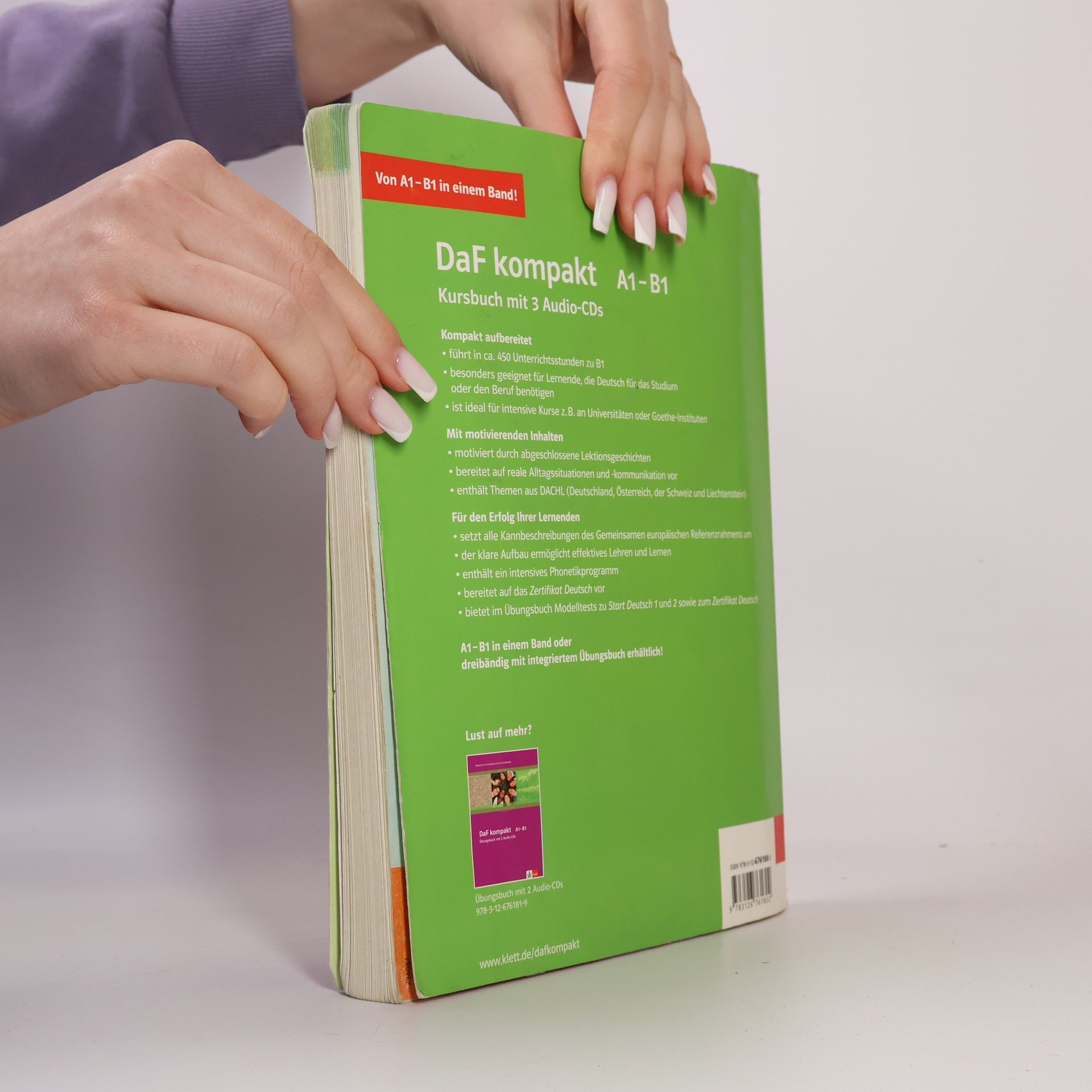 30 Lektionen, verteilt auf die Niveaustufen A1 (8 Lektionen), A2 (10 Lektionen) und B1 (12 Lektionen Je Lektion 3 inhaltliche Doppelseiten sowie 1 Doppelseite Überblick über Lektionswortschatz, Grammatik und Redemittel Klare Zuordnung der Kannbeschreibungen zu den Doppelseiten Prüfungsrelevante Aufgabentypen des Zertifikats Deutsch im B1-Teil integriert und gekennzeichnet DaF kompakt, das Anfängerlehrwerk für Lernende, die schnell das Niveau B1 erreichen wollen, führt Erwachsene in einem Band von A1 bis B1. Der Kurs orientiert sich am Gemeinsamen europäischen Referenzrahmen, ist kompakt aufbereitet und führt durch seine steile Progression zu schnellen Lernerfolgen. In den abgeschlossenen Lektionsgeschichten können sich die Lernenden wiederfinden. DaF kompakt bereitet auf reale Alltagssituationen und -kommunikation vor, enthält Themen aus D-A-CH-L und thematisiert kulturelle Unterschiede. Projektaufgaben im Arbeitsbuch fördern die Aktivität der Lernenden