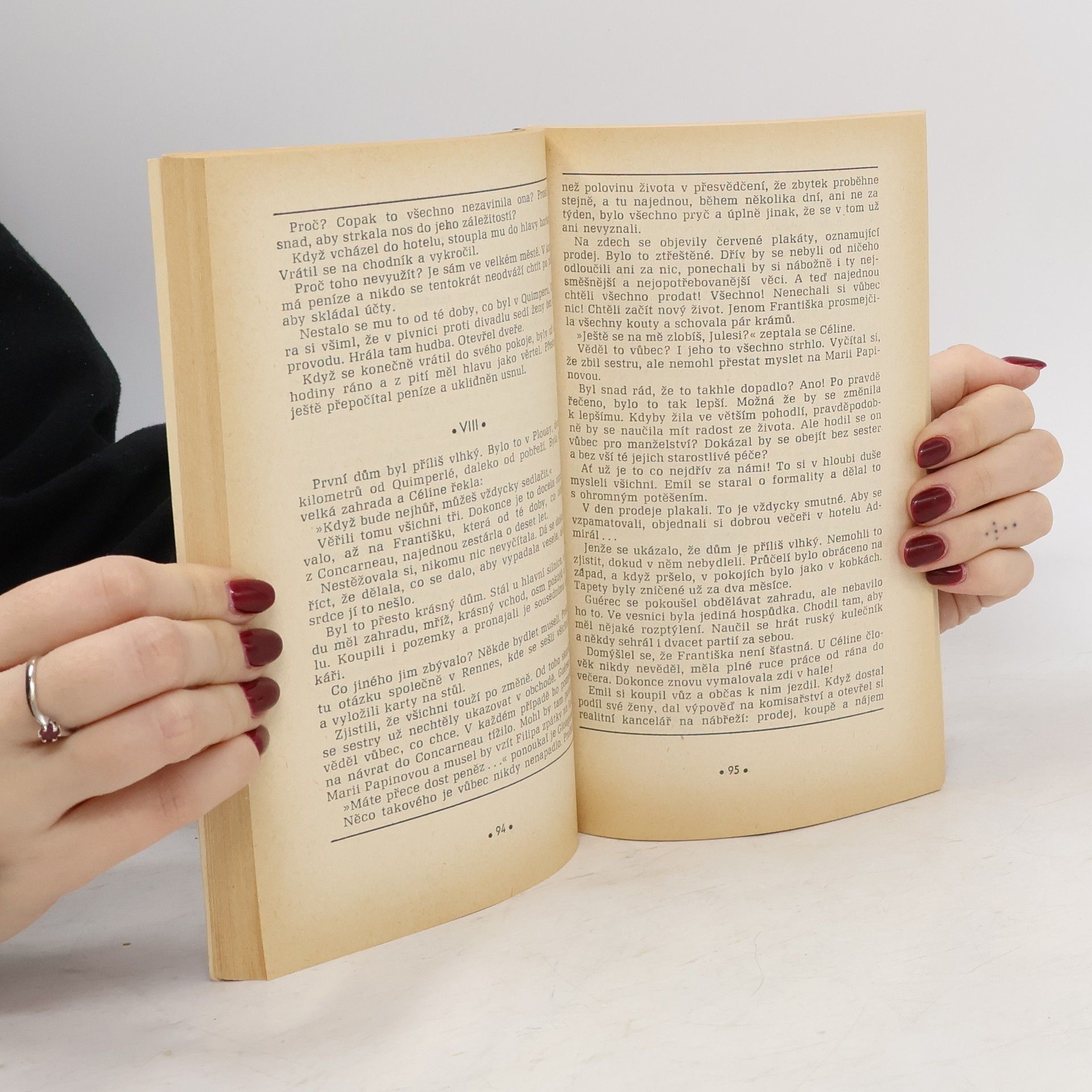 Dvě sugestivní psychologické novely ostře odsuzující odlidštěné mezilidské vztahy a nesmyslnou honbu za penězi. Slečny z Concarneau – příběh starého mládence, obklopeného laskavou, ale tyranizující péčí svých sester, které si osobují právo rozhodovat o jeho životě. Malempin –příběh lékaře, který u nemocného synka bilancuje svůj život. Dětství prožil v neradostném ovzduší, na celý život jej poznamenala rodiná závist a nenávist, která vedla až ke zločinu. Lékař se ožení z vypočítavosti a celý život prožije v obavách z budoucnosti a náhlých katastrof.
