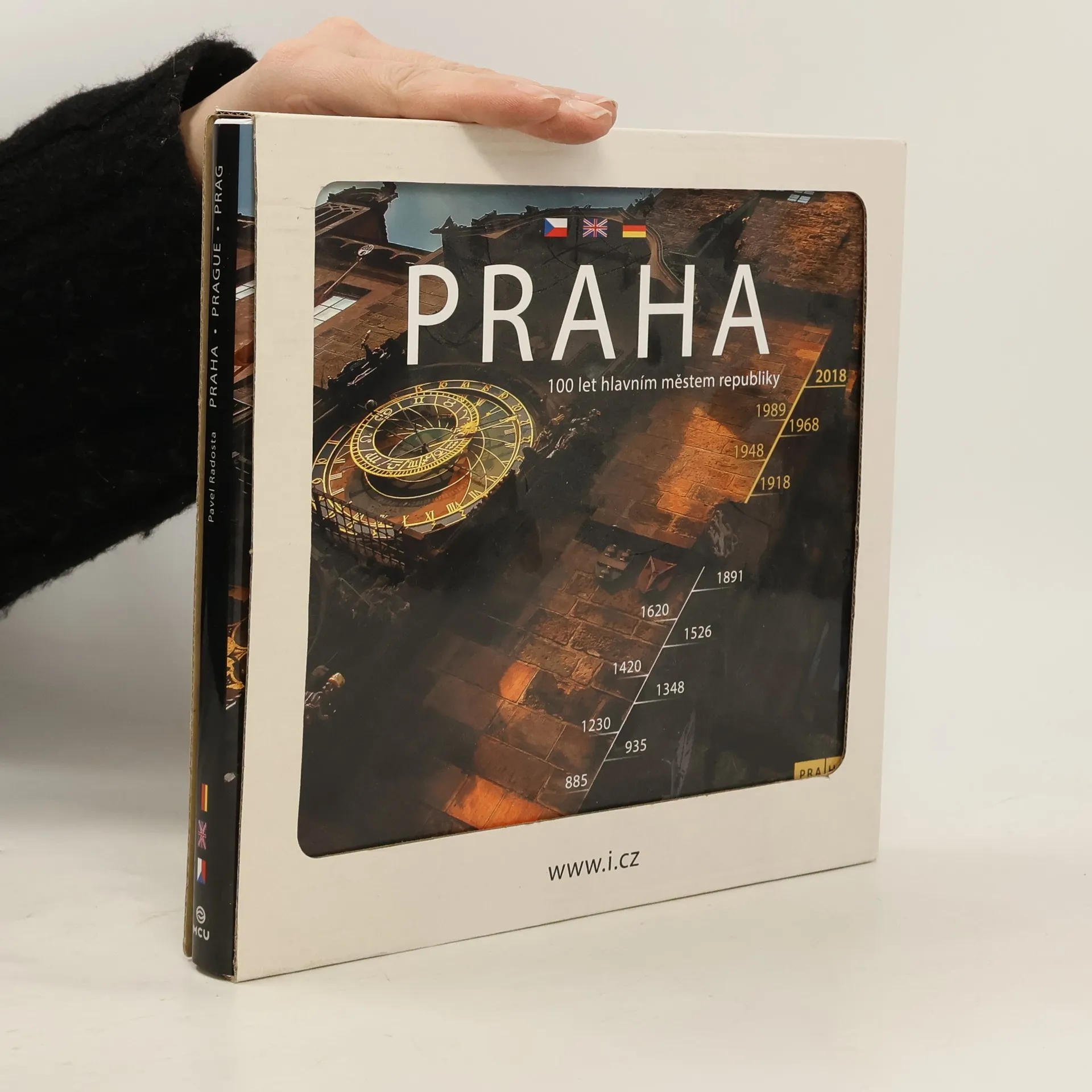 "Klasické" i zcela neznámé pražské motivy, často zamyšlené či zasněné, někdy až melancholické, ale vždy nové a nečekané pohledy na Matku měst objektivem Pavla Radosty, redaktora časopisu Moje země. Praha – pro umělce nekonečná inspirace. A ačkoli by se mohlo zdát, že už byla zachycena ve všech svých podobách, denních a ročních dobách, i náladách, a že už není možné podívat se na ni znovu jinak, nově, Pavlovi Radostovi, fotografovi a redaktorovi časopisu Moje země, se to podařilo. Kniha přináší opravdu jedinečný soubor fotografií, které mají daleko k jakékoli strohé popisnosti, ale o to více podněcují čtenářovu fantazii a nejednou mu vnucují otázku, odkud je ten který úžasný záběr vlastně pořízený…