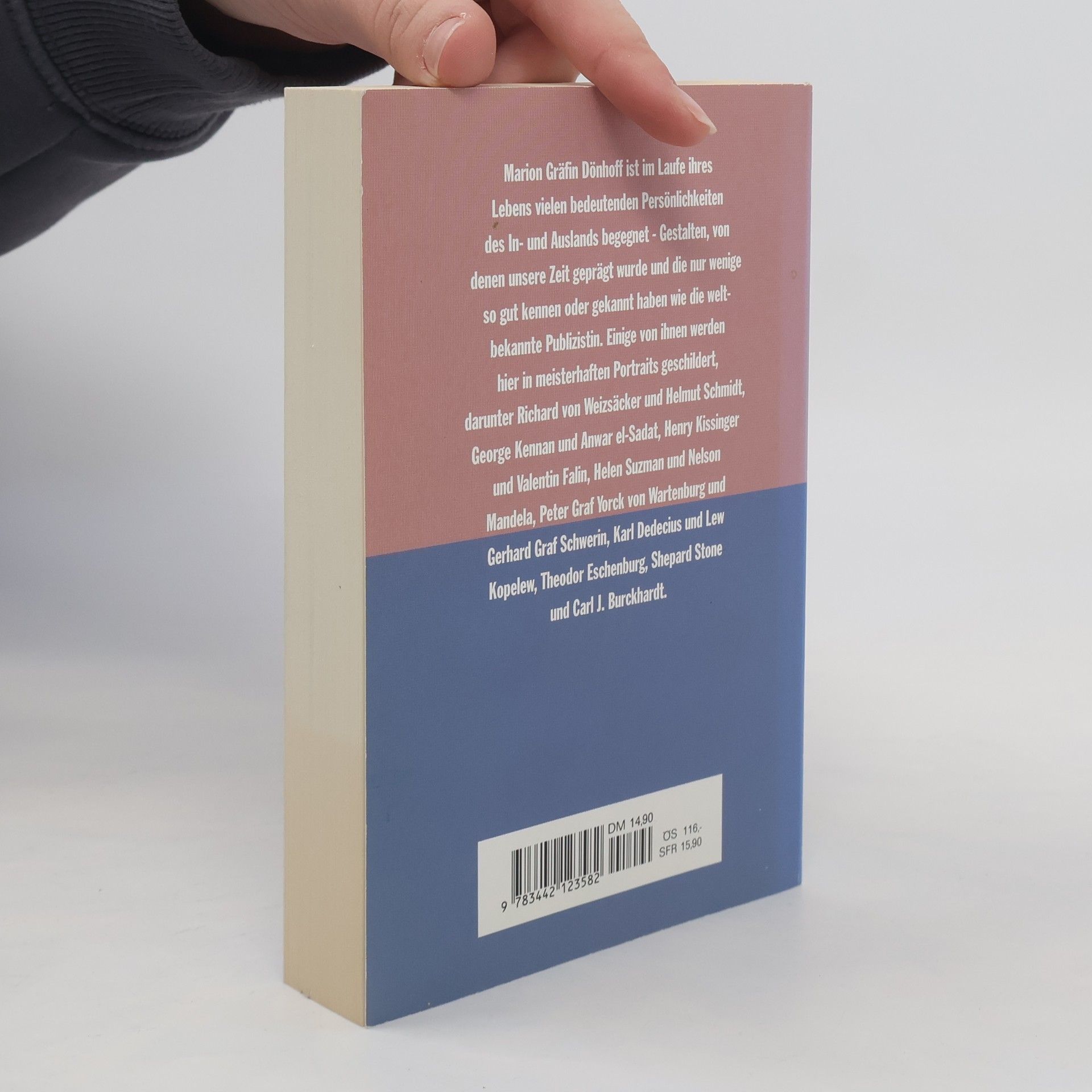 Marion Gräfin Dönhoff porträtiert Persönlichkeiten, die ihr im Lauf ihres Lebens begegnet sind und die unsere Zeit entscheidend geprägt haben. Zu ihnen zählen Richard von Weizsäcker, Helmut Schmidt, Henry Kissinger, C.J.Burckhardt, Ivan Illich, Lew Kopelew, George Kennan. Von unterschiedlicher,manchmal gegensätzlicher Auffassung, ist ihnen, so die Autorin, etwas gemeinsam:"Sie sind ganz echt-Sie lassen sich nicht vom zeitgeist oder von Werbeargenturen stilisieren. Sie machen keine Konzessionen an Publikum, Mode, Karriere. Sie sind ohne Furcht. Sie folgen ihren eigenen Maßstäben und ihrer Intuition..."Dr. rer. pol. Marion Gräfin Dönhoff, geboren 1909 in Ostpreußen, studierte Volkswirtschaft. Seit 1946 gehört sie der Redaktion der Hamburger Wochenzeitung 'DIE ZEIT' an, seit 1968 als Chefredakteur. 1973 wurde sie Herausgeberin. Sie wurde u. a. mit dem Theodor-Heuss-Preis und dem Friedenspreis des Deutschen Buchhandels ausgezeichnet. Zu ihren zahlreichen Buchpublikationen zählen: 'Kindheit in Ostpreußen', 'Gestalten unserer Zeit', 'Im Wartesaal der Geschichte' und zuletzt der Bestseller 'Zivilisiert den Kapitalismus'.