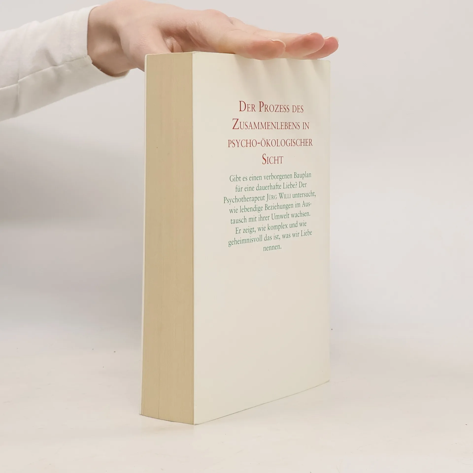 Prof. Dr. med. Dr. h. c. Jürg Willi ist Facharzt für Psychiatrie und Psychotherapie. Er war Direktor der Psychiatrischen Polyklinik am Universitätsspital Zürich, dann bis 1999 Ordinarius für Ambulante Psychiatrie. Jetzt leitet er das Weiterbildungsinstitut für Ökologisch-systemische Therapie in Zürich. Willi führte als erster im deutschen Sprachraum Paartherapien durch und verarbeitete sie wissenschaftlich.