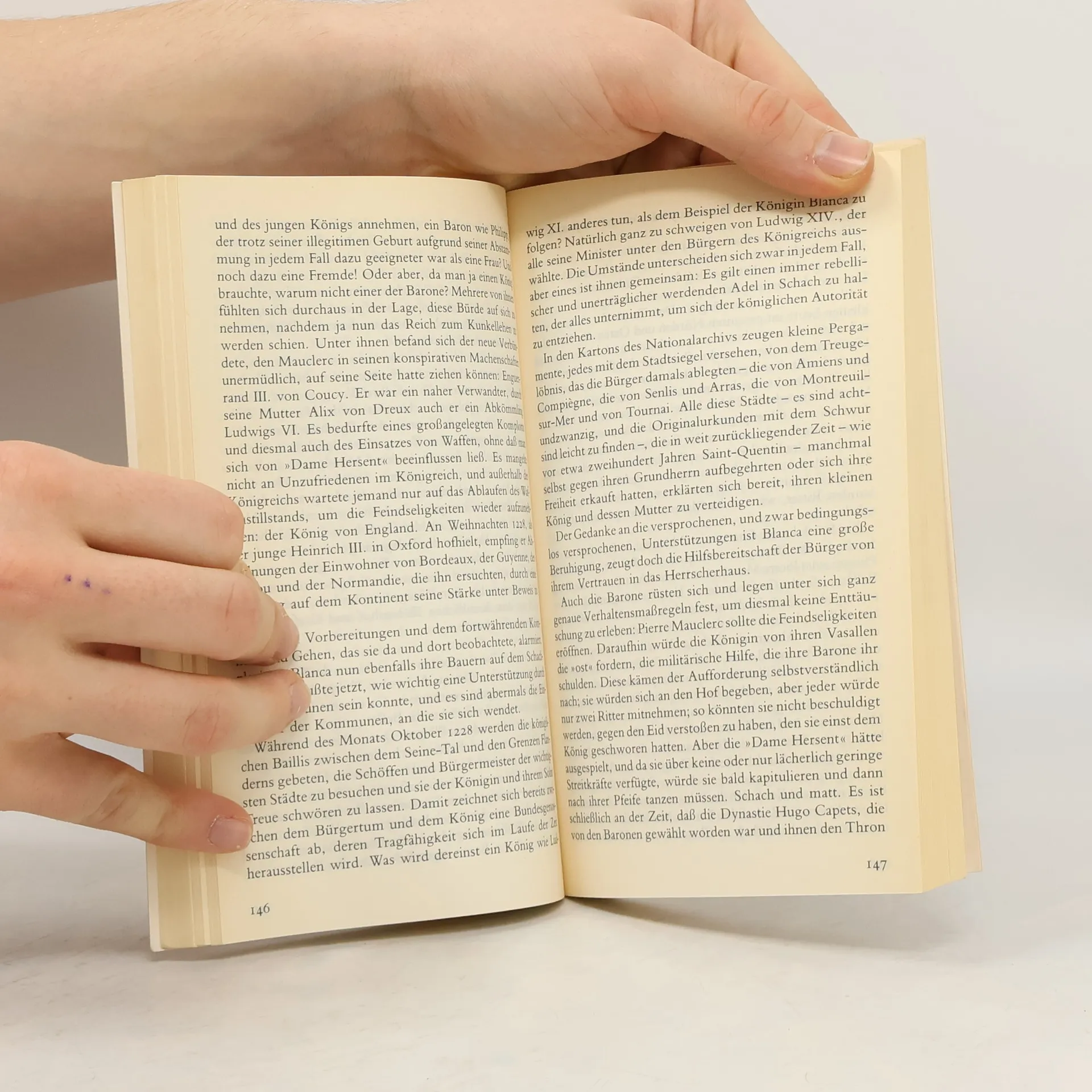 Königin Blanca, seit ihrem zwölften Lebensjahr mit Ludwig VIII. von Frankreich vermählt, lenkt nach dessen frühem Tod die Geschicke ihres Landes mit sicherer Hand durch die Turbulenzen der ersten Hälfte des 13. Jahrhunderts. Regine Pernoud, bekannt für ihr erzählerisches Geschick und ihre Treue zum historischen Material, zeichnet das Bild dieser wahrhaft königlichen Frau.