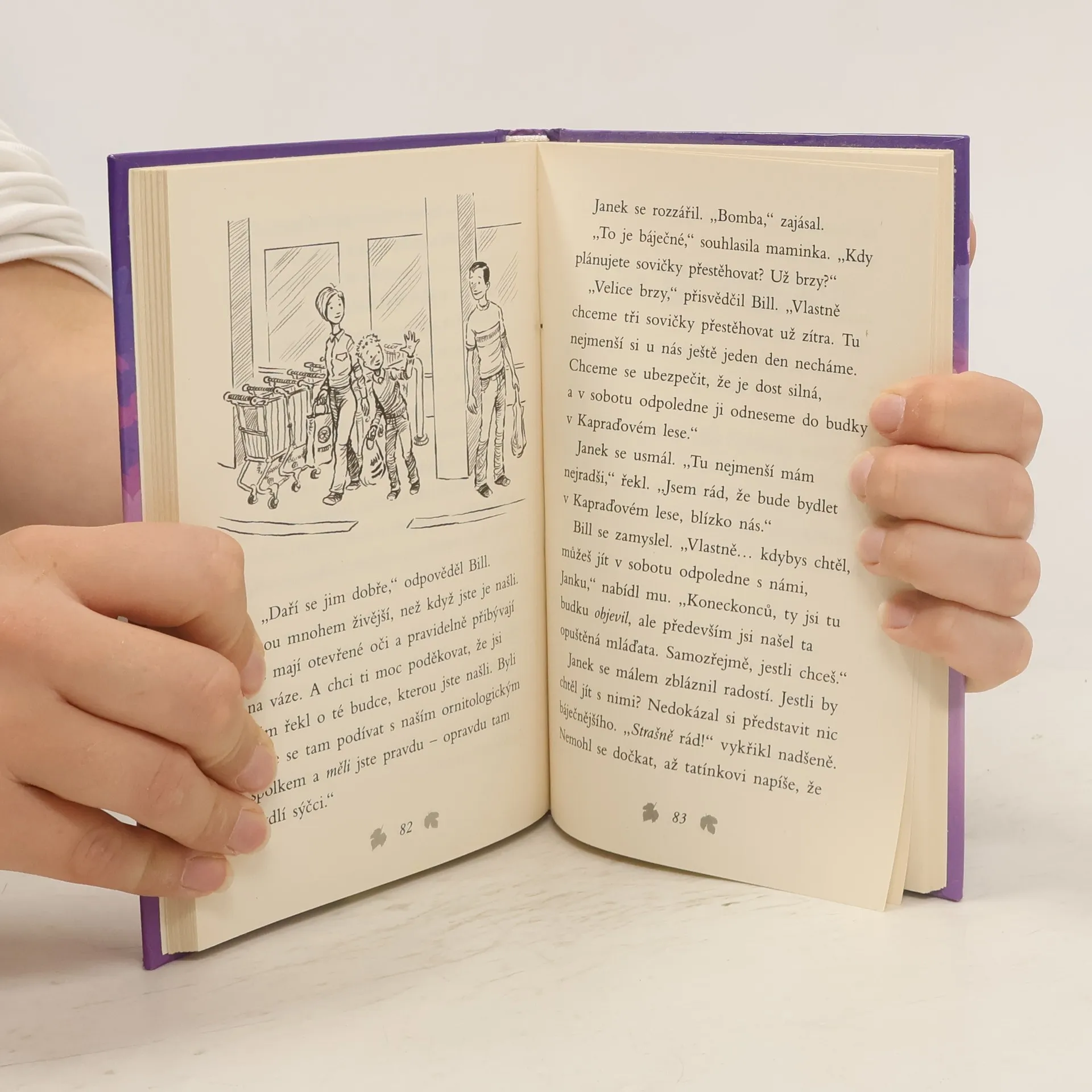 Příběh se šťastným koncem, který se skutečně stal! Při bourání staré stodoly přišly o střechu nad hlavou čtyři malé sovičky. Když je Janek najde, jsou hladové a prochladlé. Po jejich rodičích není ani vidu, ani slechu. Chlapcova maminka proto zavolá do záchranné stanice, kde jim poradí, jak se o ně mají postarat, než si pro ně přijedou. Ptáčátka jsou z nejhoršího venku, ale podaří se pro ně najít náhradní rodinu? Nebude to snadné. Janek se ale rozhodne, že záchranářům v hledání pomůže… Krásný příběh o lidech s dobrým srdcem, kteří pomáhají zachraňovat zvířátka.