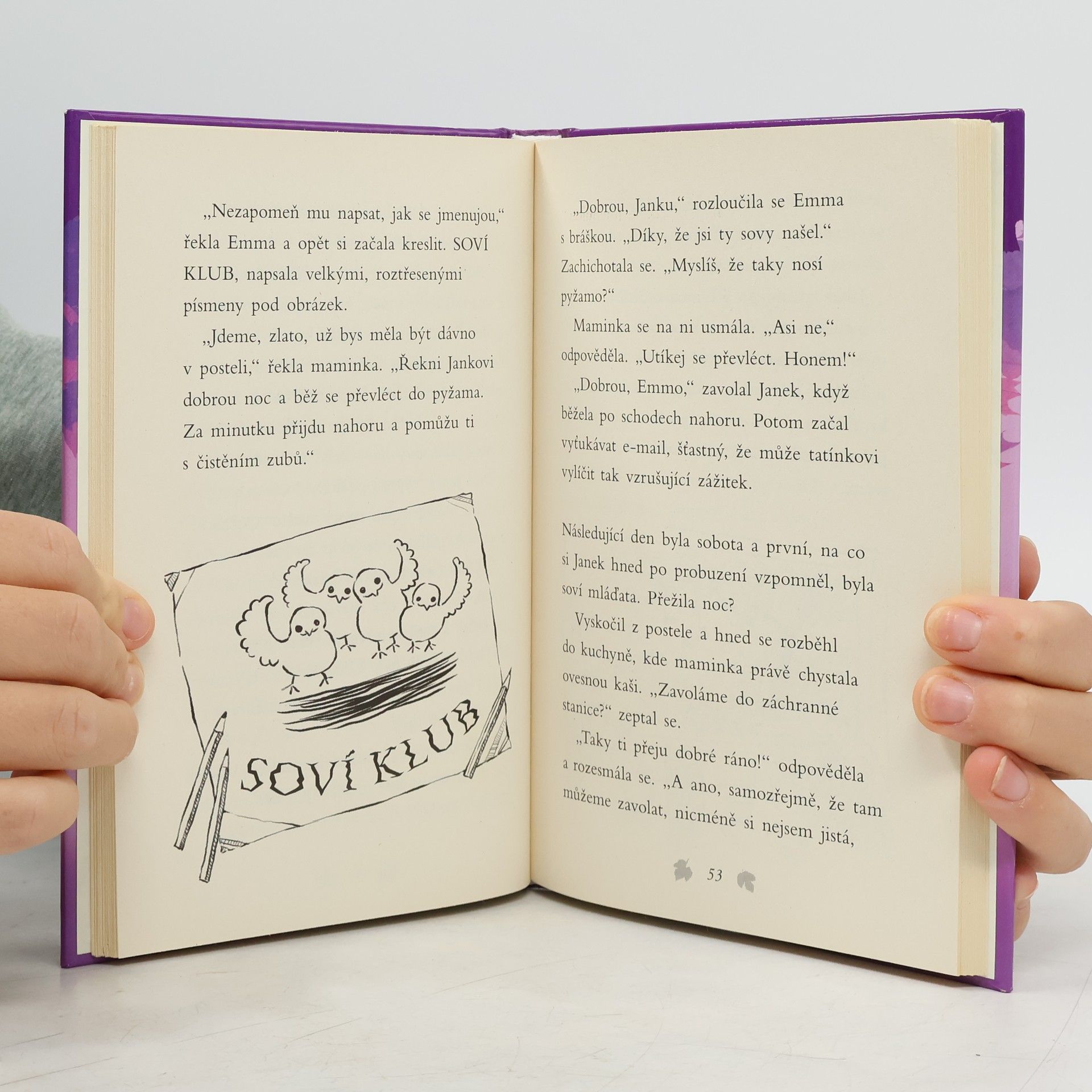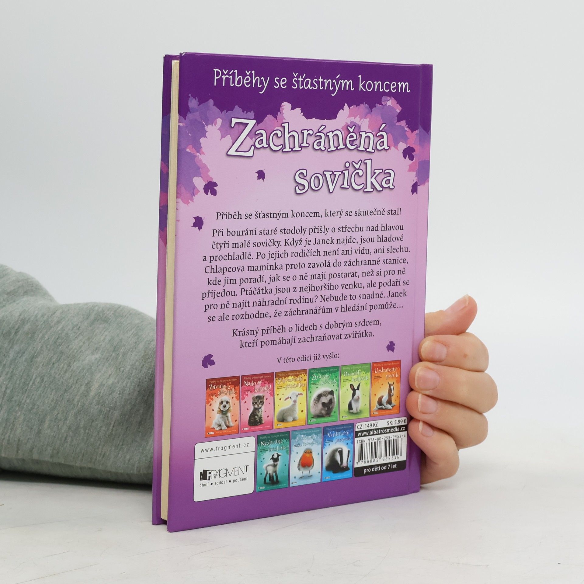 Příběh se šťastným koncem, který se skutečně stal! Při bourání staré stodoly přišly o střechu nad hlavou čtyři malé sovičky. Když je Janek najde, jsou hladové a prochladlé. Po jejich rodičích není ani vidu, ani slechu. Chlapcova maminka proto zavolá do záchranné stanice, kde jim poradí, jak se o ně mají postarat, než si pro ně přijedou. Ptáčátka jsou z nejhoršího venku, ale podaří se pro ně najít náhradní rodinu? Nebude to snadné. Janek se ale rozhodne, že záchranářům v hledání pomůže… Krásný příběh o lidech s dobrým srdcem, kteří pomáhají zachraňovat zvířátka.