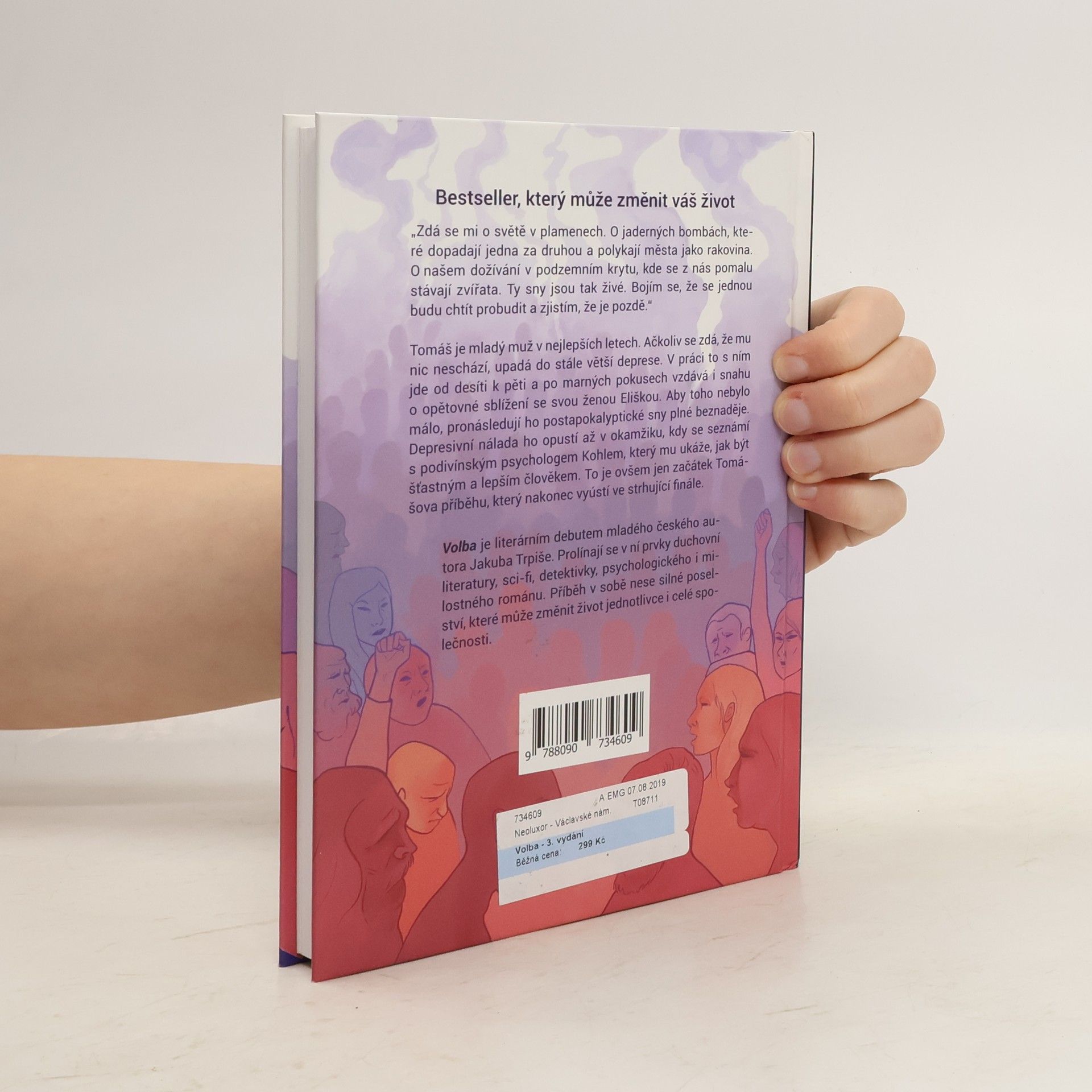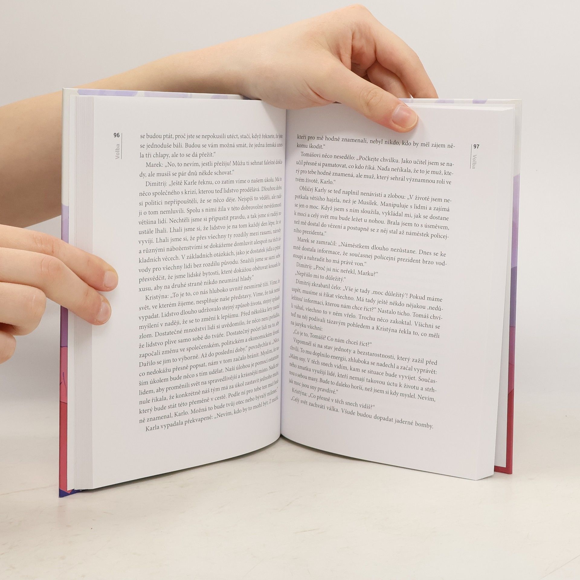 "Zdá se mi o světě v plamenech. O jaderných bombách, které dopadají jedna za druhou a polykají města jako rakovina. O našem dožívání v podzemním krytu, kde se z nás pomalu stávají zvířata. Ty sny jsou tak živé. Bojím se, že se jednou budu chtít probudit a zjistím, že je pozdě.“ Tomáš je mladý muž v nejlepších letech. Ačkoliv se zdá, že mu nic neschází, upadá do stále větší deprese. V práci to s ním jde od desíti k pěti a po marných pokusech vzdává i snahu o opětovné sblížení se svou ženou Eliškou. Aby toho nebylo málo, pronásledují ho postapokalyptické sny plné beznaděje. Depresivní nálada ho opustí až v okamžiku, kdy se seznámí s podivínským psychologem Kohlem, který mu ukáže, jak být šťastným a lepším člověkem. To je ovšem jen začátek Tomášova příběhu, který nakonec vyústí ve strhující finále. Volba je literárním debutem mladého českého autora Jakuba Trpiše. Prolínají se v ní prvky duchovní literatury, sci-fi, detektivky, psychologického i milostného románu. Volba se v roce 2018 stala bestsellerem, kdy se jí prodalo 15 000 výtisků. Téhož roku vyšlo třetí vydání s pevnou vazbou i novou obálku a také anglický překlad The Choice.