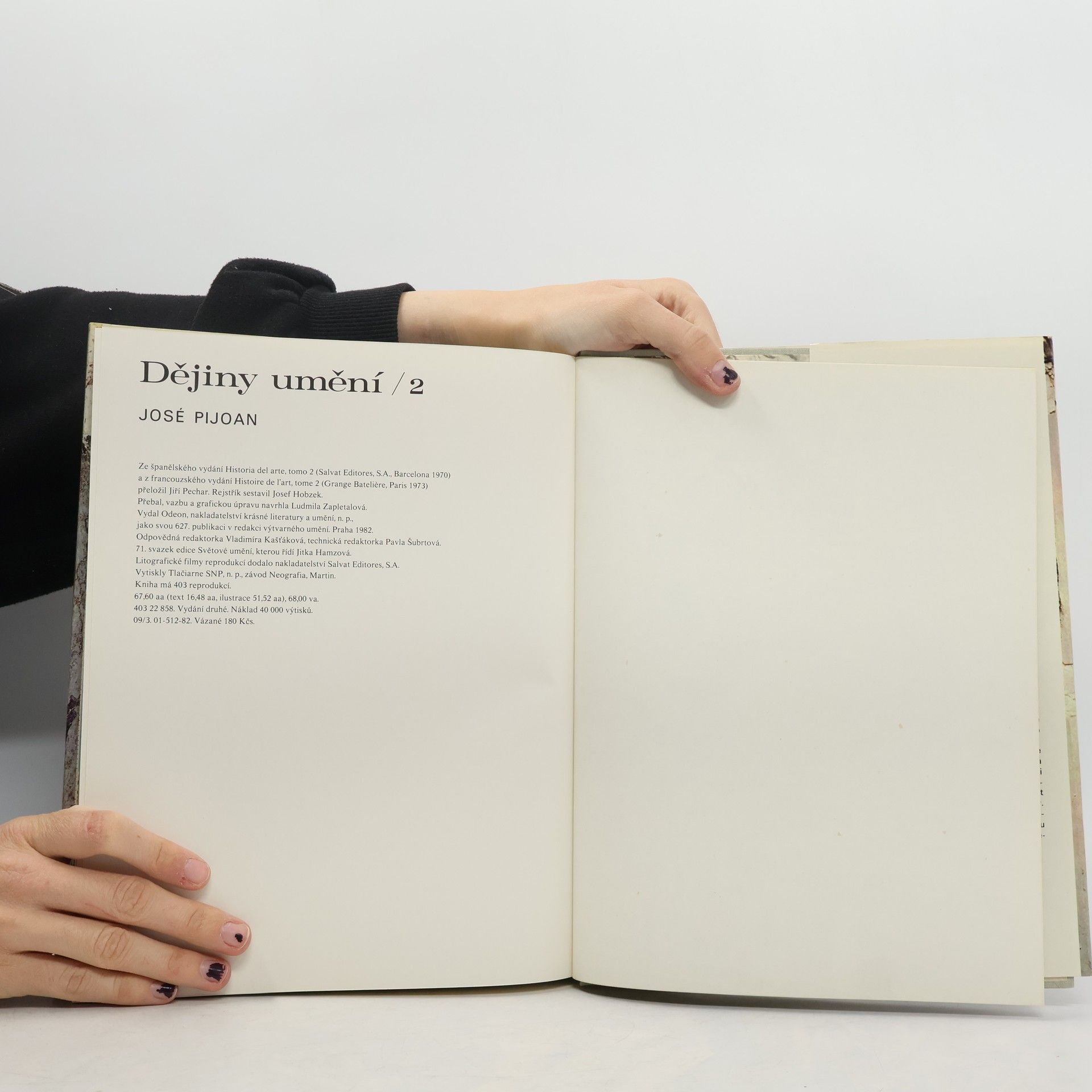 Druhý svazek Pijoanových Dějin umění je věnován antice. Jde o knihu tematicky ucelenou, a může tedy sloužit samostatně jako dobrá přehledná příručka dějin umění Řecka a Říma. Obsahuje: umění předhelénské, řecké archaické umění do perských válek a po per. válkách, řecké umění v době Periklově, řecké umění 4.st.,helénistické umění, etruské umění, římské umění v době svých počátků a za republiky, římské umění za Augusta a jeho nástupců, římské umění za Flaviovců a Antoninovců, římské umění provinční a vojenské, římské pozdní umění.