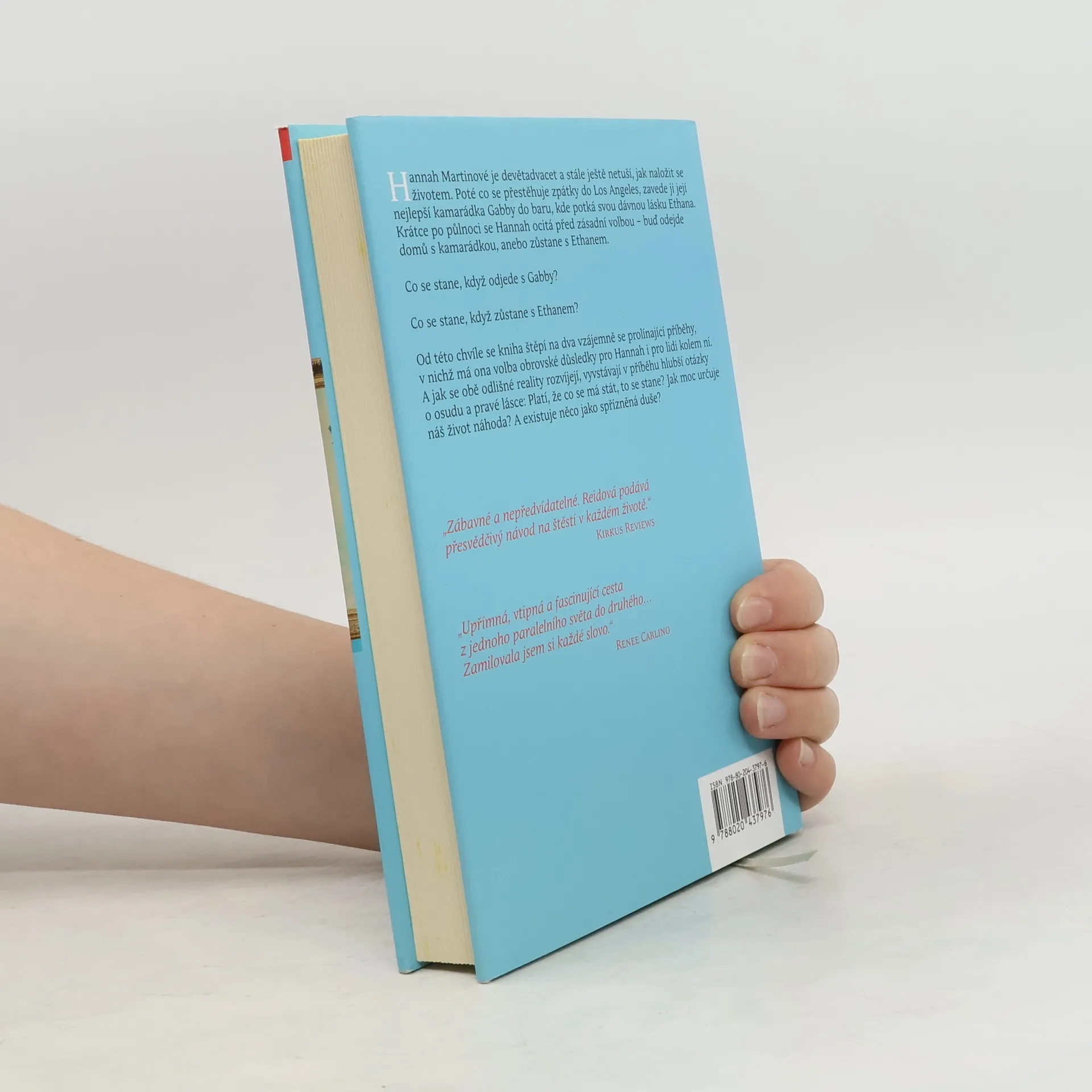 Podmanivý příběh o mladé ženě, jejíž osud závisí na tom, jak se rozhodne, když znovu potká svou první lásku. Ve střídajících se kapitolách se před námi odvíjejí dva možné scénáře – s překvapivě rozdílnými výsledky. Hannah Martinové je devětadvacet a stále ještě netuší, co se životem. Od promoce žila v šesti různých městech a vystřídala bezpočet zaměstnání. Poté co se v New Yorku zaplete se ženatým mužem, rozhodne se vrátit zpátky do rodného Los Angeles. Zabydlí se u své kamarádky Gabby, která ji zavede na večírek s dávnými přáteli. Právě tam se Hannah setká se svým bývalým přítelem Ethanem. Gabby chce ale už po půlnoci domů a Hannah se ocitá před těžkou volbou – buď odejde s kamarádkou, anebo zůstane s Ethanem. Váhá. Co se stane, když odjede s Gabby? A co se stane, když ne? Od této chvíle se kniha štěpí na dva různé příběhy s velikými důsledky pro Hannah i pro lidi kolem ní. A jak se obě odlišné reality rozvíjejí, vyvstávají v příběhu hlubší otázky o osudu a pravé lásce: Platí, že co se má stát, to se stane? Jak moc náš život určuje náhoda? A existuje něco jako spřízněná duše? Hannah věří, že ano. A v obou světech je přesvědčená, že ji našla.