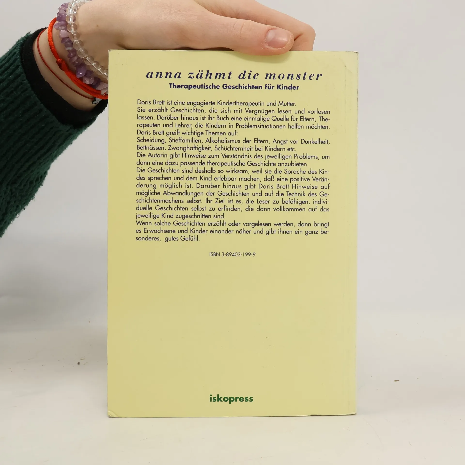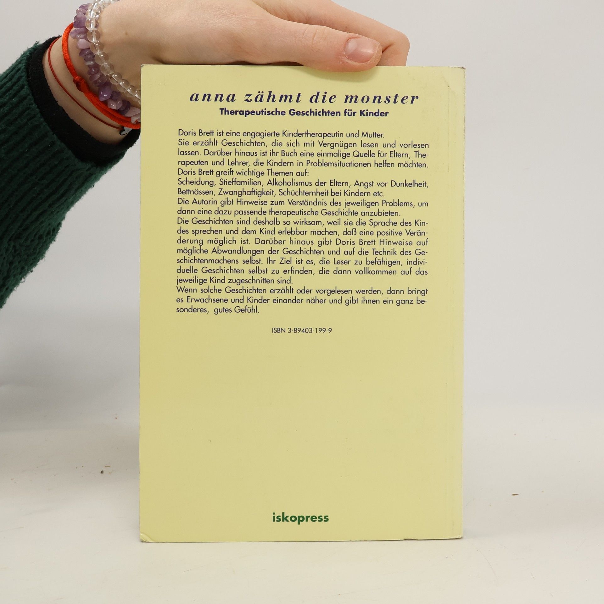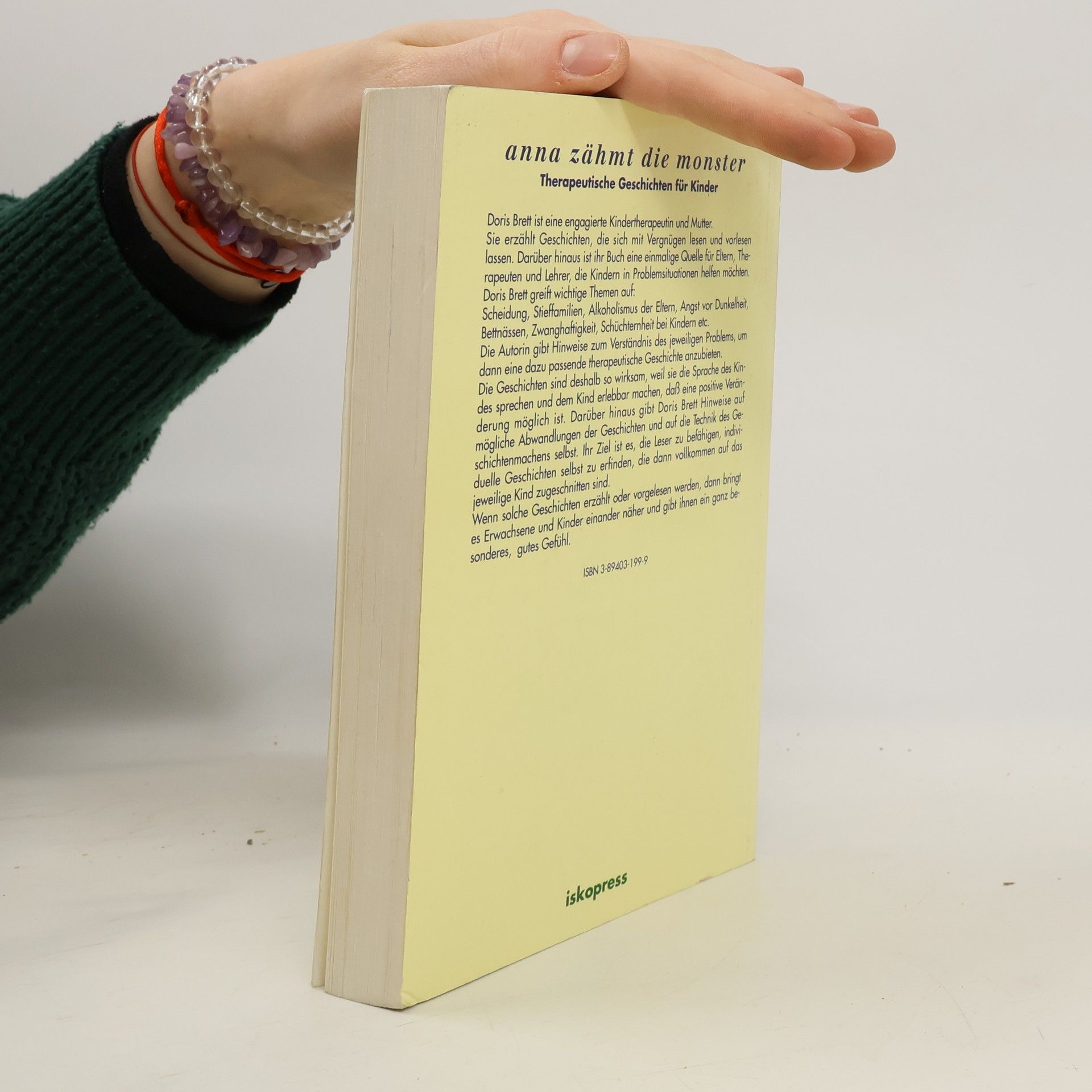 Dieser Band mit therapeutischen Geschichten für die etwas älteren Kinder enthält die Themen: Angst vor Dunkelheit - Bettnässen - Zwanghaftigkeit - Schüchternheit - Hänseln - Scheidung - Stieffamilien - Impulsive Kinder - Geschwisterprobleme - Alkoholismus. (Siehe auch ISBN 3- 89403- 198-0) "Doris Bretts Kernthese lautet: , Wenn man zu Kindern durch Geschichten spricht, spricht man zu ihnen in der Sprache, die sie verstehen und in der sie am besten antworten können - in der Sprache von Phantasie und Imagination.' Die Handlung der Geschichten kann realistisch sein oder im , Es-war- einmal-Land' der Hexen und Zauberer spielen. Solange die Probleme denen des Kindes entsprechen, können die Geschichten überall passieren und alle möglichen Personen, Feen und sprechenden Tiere präsentieren: ein wichtiger und vorlesenswerter Kinderratgeber." (Psychologie heute)