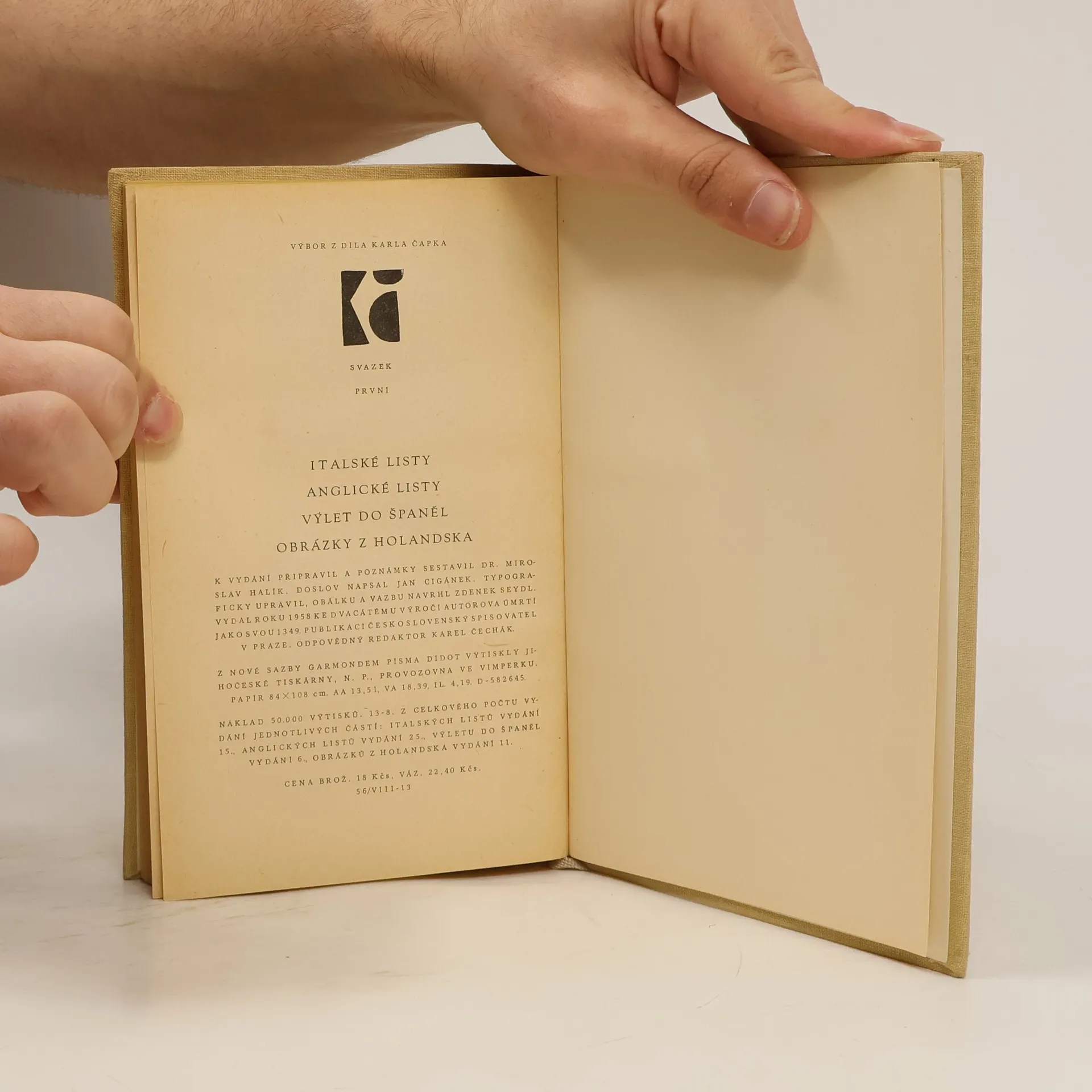 Von Italské listy. Anglické listy. Výlet do Španěl. Obrázky z Holandska (1958) sind aktuell auf Lager verfügbar.