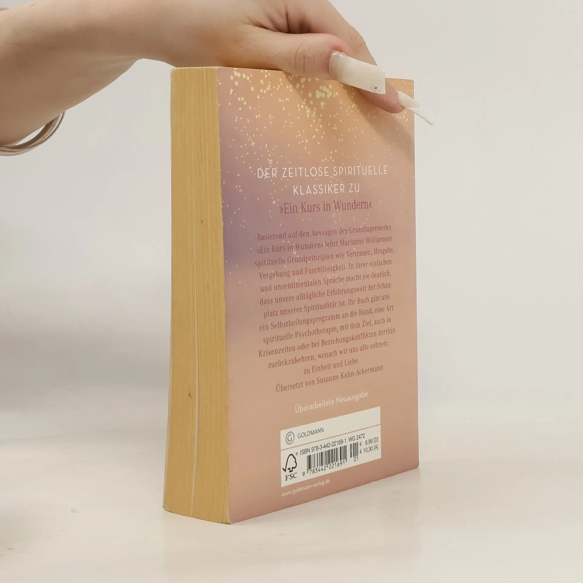 Basierend auf den Aussagen des Grundlagenwerks „Ein Kurs in Wundern“, lehrt Marianne Williamson spirituelle Grundprinzipien wie Vertrauen, Hingabe, Vergebung und Furchtlosigkeit. In ihrer einfachen und unsentimentalen Sprache macht sie deutlich, dass unsere alltägliche Erfahrungswelt der Schauplatz unserer Spiritualität ist. Ihr Buch gibt uns ein Selbstheilungsprogramm an die Hand, eine Art spirituelle Psychotherapie, mit dem Ziel, auch in Krisenzeiten oder bei Beziehungskonflikten dorthin zurückzukehren, wonach wir uns alle sehnen: zu Einheit und Liebe.