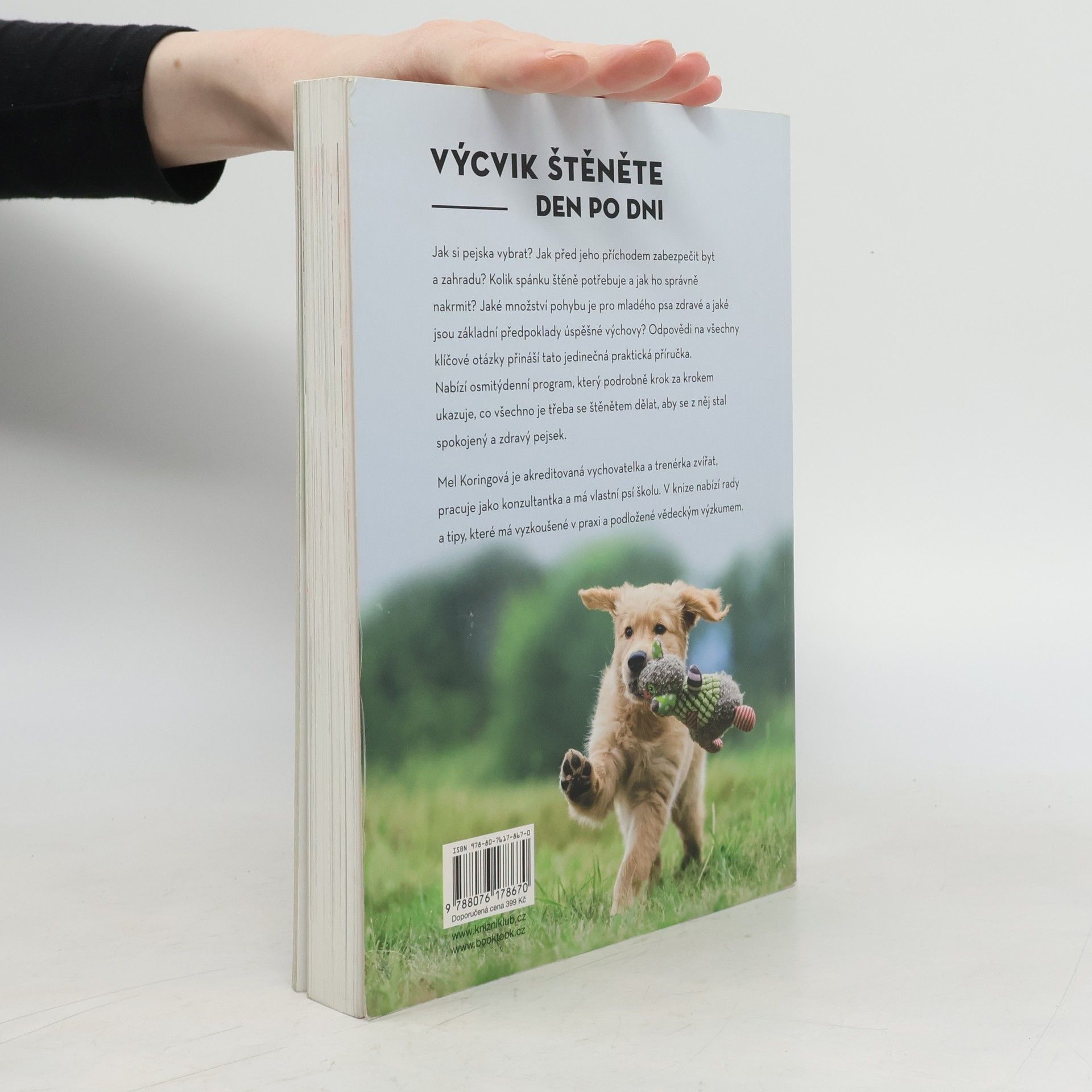 Jak si pejska vybrat? Jak před jeho příchodem zabezpečit byt a zahradu? Kolik spánku štěně potřebuje a jak ho správně nakrmit? Jaké množství pohybu je pro mladého psa zdravé a jaké jsou základní předpoklady úspěšné výchovy? Odpovědi na všechny klíčové otázky přináší tato jedinečná praktická příručka. Nabízí osmitýdenní program, který podrobně krok za krokem ukazuje, co všechno je třeba se štěnětem dělat, aby se z něj stal spokojený a zdravý pejsek. Mel Koringová je akreditovaná vychovatelka a trenérka zvířat, pracuje jako konzultantka a má vlastní psí školu. Ve své knize nabízí rady a tipy, které má vyzkoušené v praxi a podložené vědeckým výzkumem.