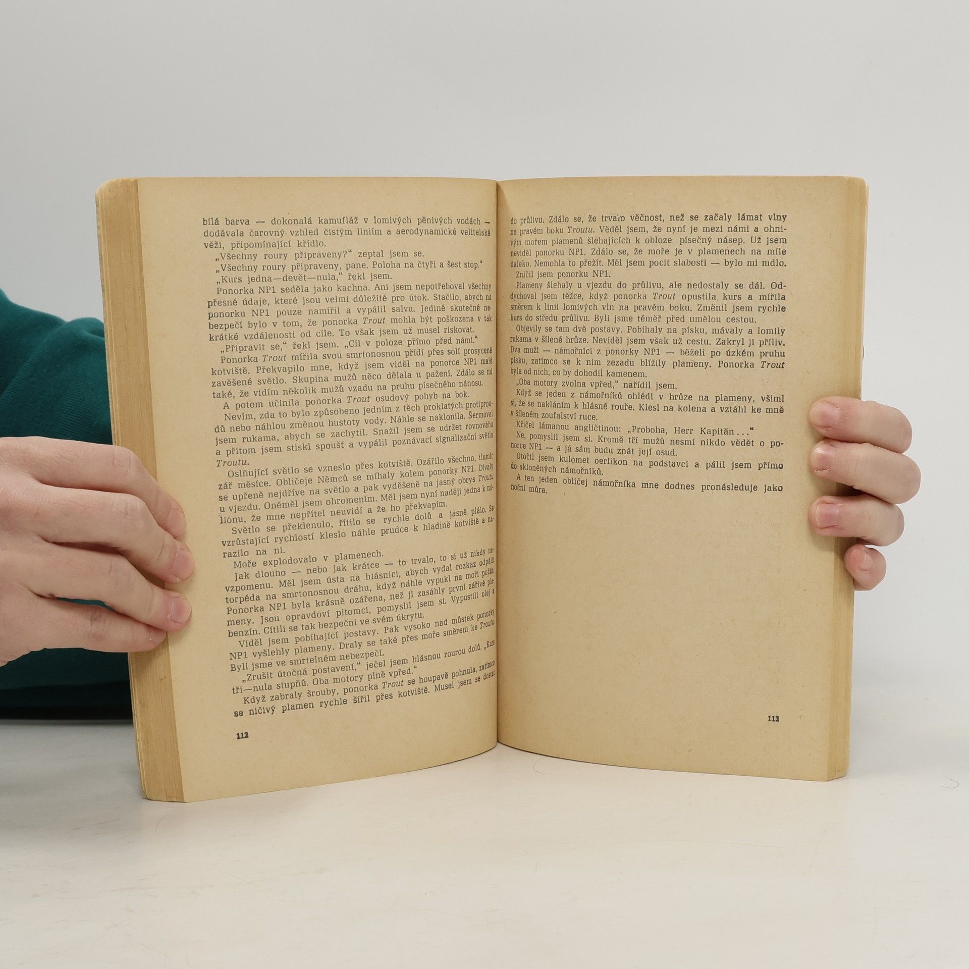 Dobrodružný román, odrážející v retrospektivě zážitky z ponorkových bojů druhé světové války. Někdejší kapitán anglické ponorky, propuštěný z britského válečného loďstva, podniká s bývalým prvním důstojníkem na rybářské lodi cestu k jihozápadním břehům Afriky, kde se mu podaří objevit důkaz úspěšného souboje s německou ponorkou, který vyhrál při nedodržení předpisů a byl proto suspendován.