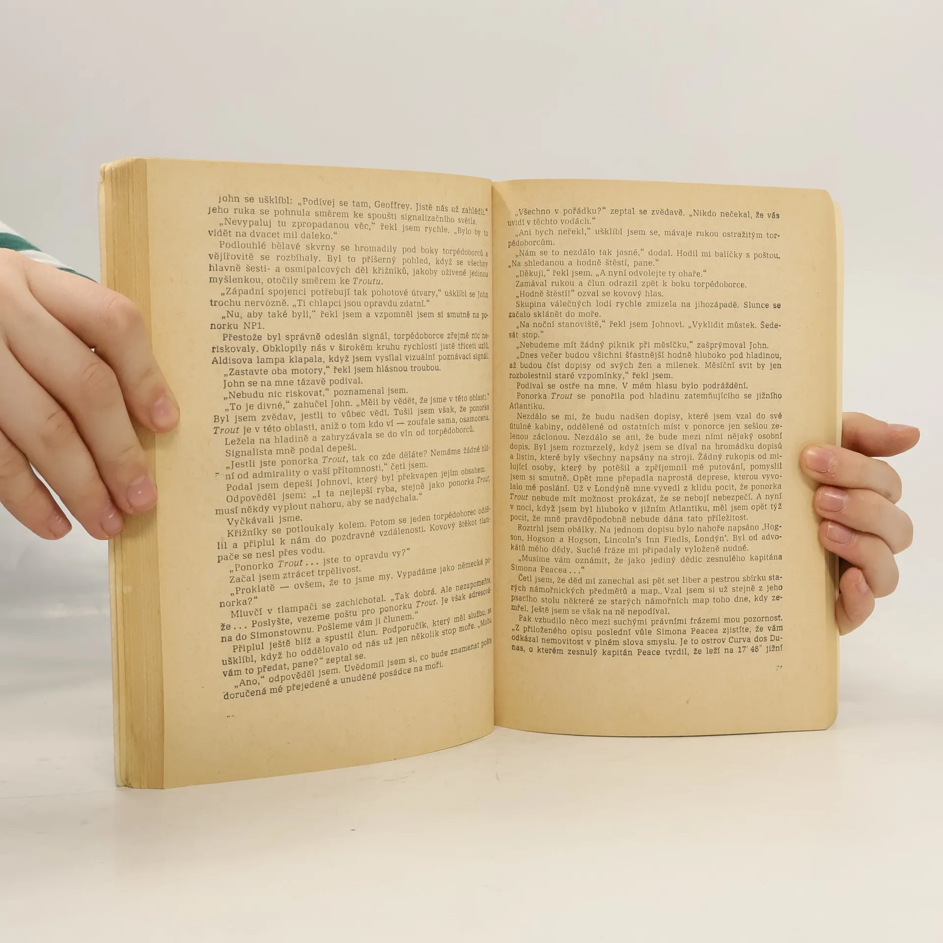 Dobrodružný román, odrážející v retrospektivě zážitky z ponorkových bojů druhé světové války. Někdejší kapitán anglické ponorky, propuštěný z britského válečného loďstva, podniká s bývalým prvním důstojníkem na rybářské lodi cestu k jihozápadním břehům Afriky, kde se mu podaří objevit důkaz úspěšného souboje s německou ponorkou, který vyhrál při nedodržení předpisů a byl proto suspendován.