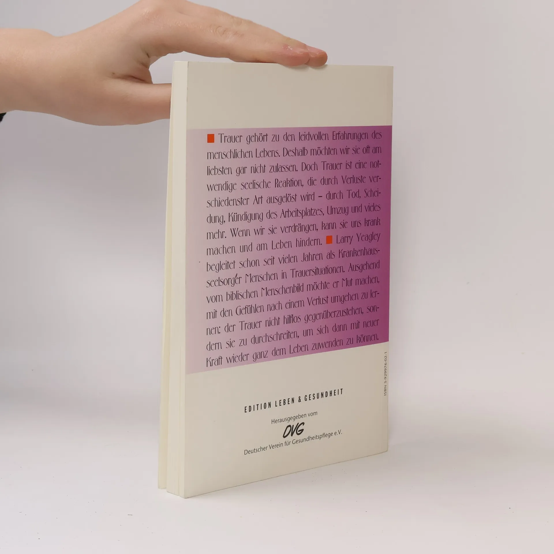 Der Autor: Larry Yeagly begleitete viele Jahre als Krankenhausseelsorger und Seminarleiter Menschen in Trauersituationen. Das Buch: Trauer gehört zu den leidvollen Erfahrungen des menschlichen Lebens. Deshalb möchten wir sie oft am liebsten gar nicht zulassen. Doch Trauer ist eine gesunde seelische Reaktion, die durch Verluste verschiedenster Art ausgelöst wird - durch Tod, Scheidung, Kündigung des Arbeitsplatzes, unheilbare Krankheit und vieles mehr. Wenn wir sie verdrängen, kann sie uns krank machen und am Leben hindern. Der Autor möchte Mut machen, mit den Gefühlen nach einem Verlust umgehen zu lernen: der Trauer nicht hilflos gegenüberzustehen, sondern sie zu durchschreiten, um sich dann mit neuer Kraft wieder ganz dem Leben zuwenden zu können. Eine echte Hilfe für Menschen in Trauersituationen; für alle, die in der Seelsorge arbeiten; für jeden, der sich über dieses Thema informieren will.