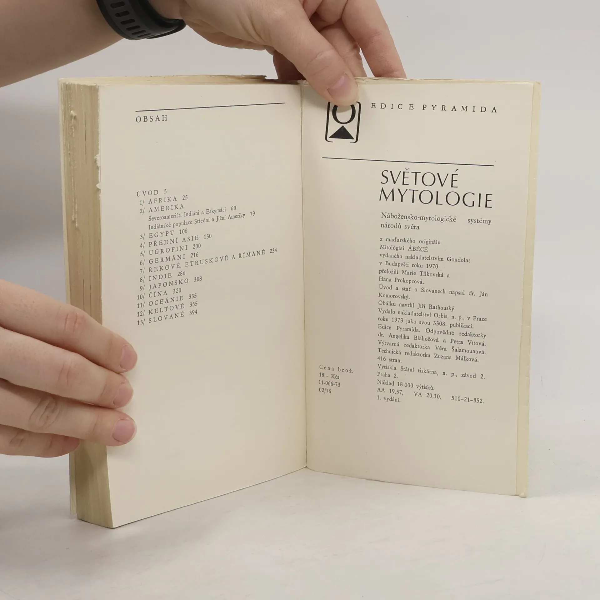 Knížka předních maďarských odborníků, doplněná o zasvěcený vysvětlující úvod a kapitolu o Slovanech z pera našeho odborníka doc. dr. Jána Komorovského, CSc., podává přehled světových nábožensko-mytologických soustav, od mytologie a náboženských představ pasteveckých a rolnických kmenů a národů Afriky, starých Inků, Májů, Aztéků, severoamerických Indiánů a Eskymáků přes mytologii starého Egypta, Sumeru, Akkadu, Hetitů, Kanaánu, Fénicie, Hebrejců, ugrofinských národů, Germánů, Řeků, Etrusků, Římanů, Indů, Japonců, Číňanů a Australanů po Kelty a staré Slovany. Práce vychází z nejnovějších vědeckých poznatků, podává čtenářům věrný obraz o nábožensko-mytologických soustavách světa. Jsou v ní zastoupeny různé typy mytologie nižší a vyšší, démonologie i polyteismu, jak se projevovaly na různých stupních kulturního vývoje v různých společenských formacích. Světové mytologie nám poskytují bohatou látku pro poznání duchovních dějin lidstva - od pocitů bázně před neznámými přírodními silami k vědeckému poznávání světa.
