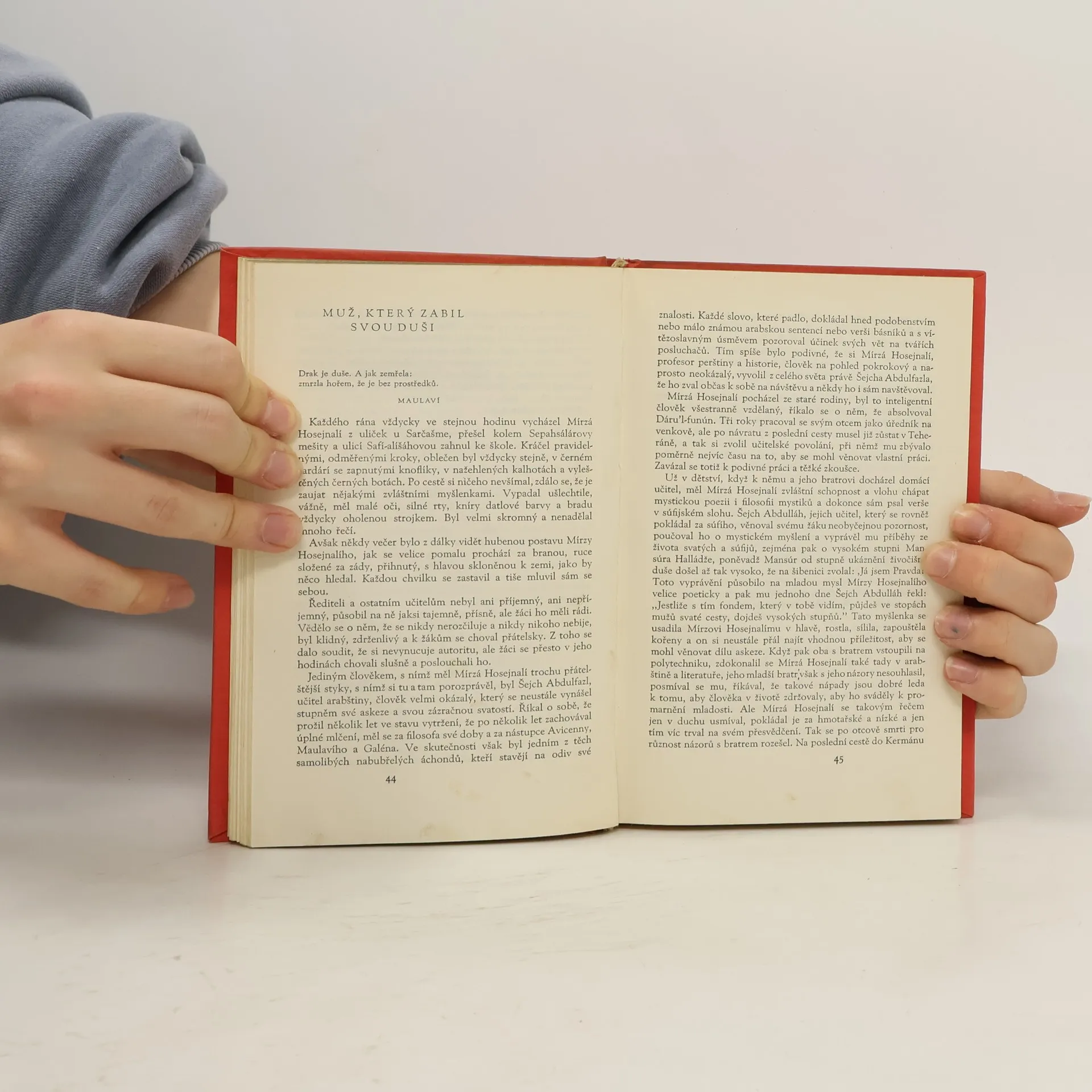 Z různých perských vydání deset povídek vybrala a přeložila Věra Kubíčková, která rovněž napsala doslov a poznámky ke knize. Hedájat ve svém literárním odkazu, který tvoří většinou povídky, dokázal i při své rozmanitosti zájmů, sjednotit prvky klasické perské poezie a s prvky moderní literatury a v jeho povídkách se propojují reálné obrysy s fantastickými prvky snového vidění. Snad proto byl často srovnáván s Kafkou – i když nepochybně zůstává výlučně svůj. POVÍDKY : O ženě, která ztratila muže Prostředník Dáš Ákol Muž, který zabil svou duši Stolec Abú Nasra Zaběhlý pes Návrat Posedlost Tři kapky krve Slepá sova Obálku s použitím reprodukce perské miniatury k Bidpajovým bajkám a vazbu s fiktivním portrétem básníka Sa’dího navrhl Milan Hegar.