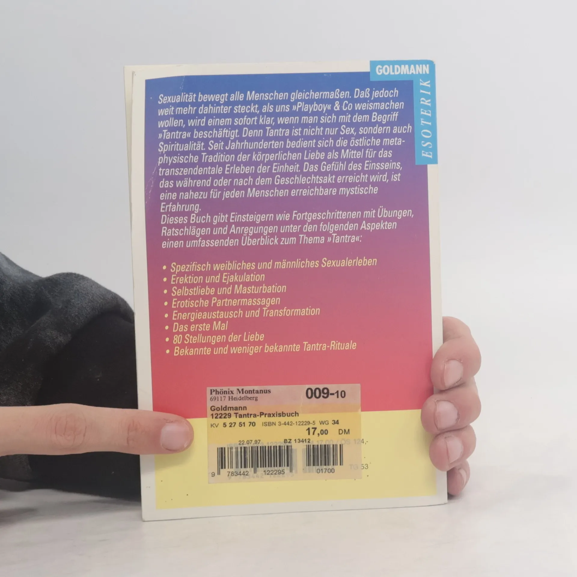Im Tantra ist die körperliche Liebe ein Mittel für die Befreiung der Lebenskraft und für das Erleben der Einheit mit dem Kosmos. Namhafte Experten führen in den tantrischen Weg ein. Im Mittelpunkt stehen sexuelle Rituale und Übungen.