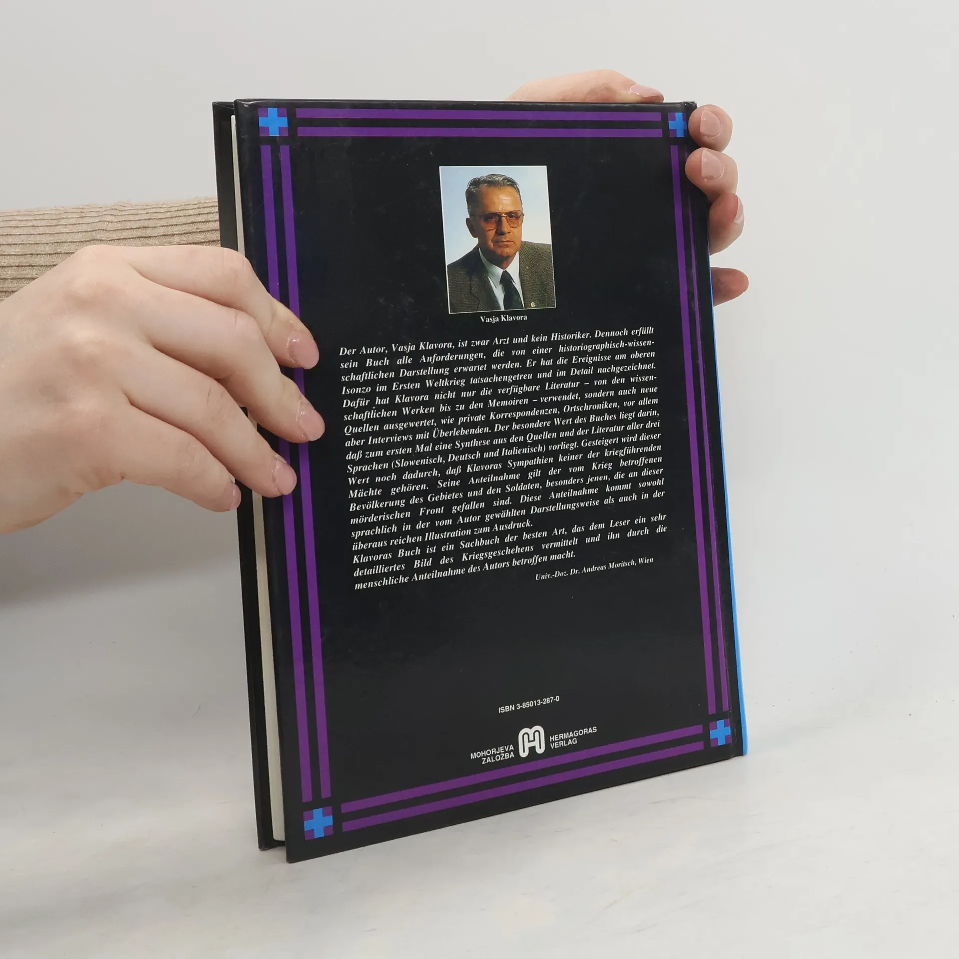 Der Arzt Vasja Klavora hat die Ereignisse am Oberen Isonzo im Raum Bovec/Flitsch im Ersten Weltkrieg tatsachengetreu und im Detail nachgezeichnet. Dabei hat er nicht nur die verfügbare Literatur verwendet, sondern auch neue Quellen ausgewertet, wie private Korrespondenzen, Ortschroniken, vor allem aber Interviews mit Überlebenden. Die Kriegsereignisse am Oberen Isonzo waren in der Zeit vom Mai 1915 bis September 1917 zwar nicht im Zentrum der Ereignisse an der Isonzofront, obwohl die Gefechte bisweilen mit jener unerbittlichen Härte geführt wurden wie am unteren Flusslauf des Isonzo, traurige Berühmtheit erlangte der Ort Flitsch jedoch durch die zwölfte und letzte Isonzoschlacht im Oktober 1917. In dieser Schlacht setzten deutsche Einheiten gerade bei Flitsch massiv Giftgas ein, das schließlich den Durchbruch der österreichisch-ungarischen und deutschen Einheiten durch die italienischen Frontlinien ermöglichte. Vasja Klavora beschreibt jedoch auch die wunderschöne Gebirgslandschaft, die in den Jahren 1915 bis 1917 die Kulisse für die fürchterlichen Kriegsereignisse bot.