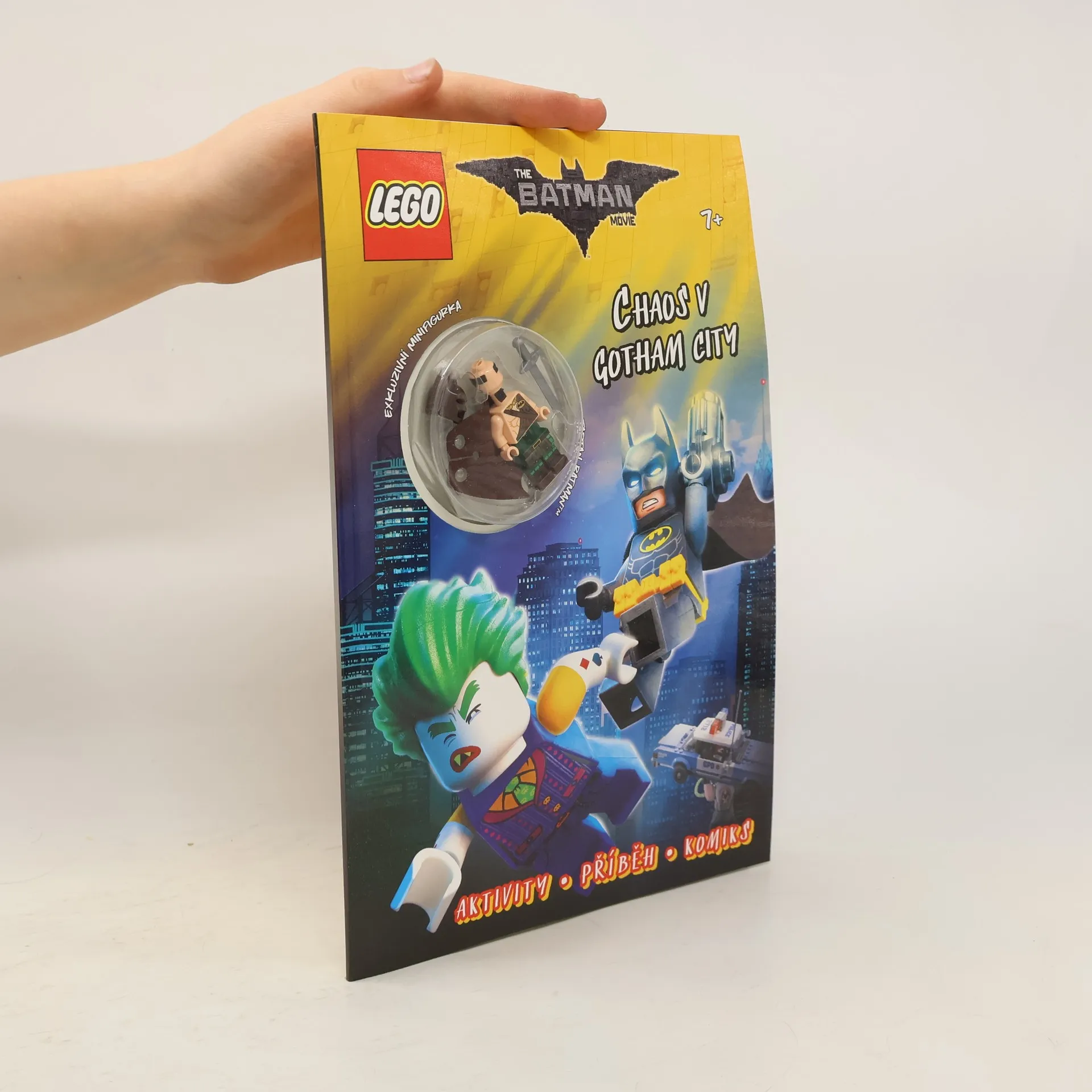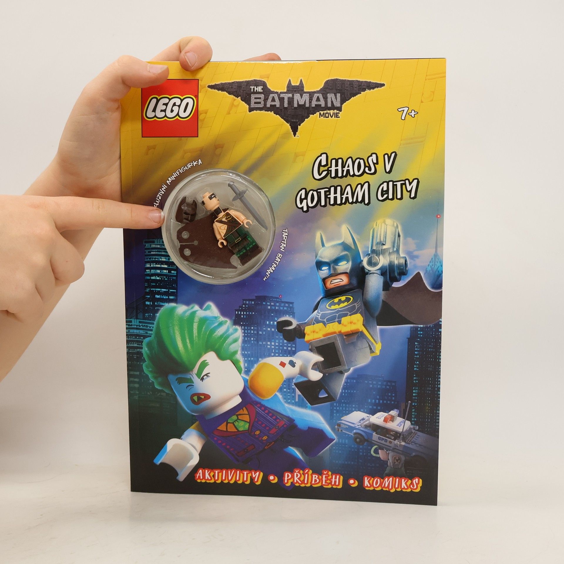 Vítej v Gotham City… Najdeš tu akci, dobrodružství a někoho, komu se říká Temný rytíř! Rád nosí černou a žlutou a jako jediný může zabránit Jokerovi™, aby převzal vládu nad městem! A jak se jmenuje? To je jasné – přeci Batman™! Přečti si komiks, vyřeš hádanky a pomoz Temnému rytíři zachránit Gotham City, aby neupadlo do super-padoušského chaosu! Exkluzivní minifigurka Batmana v kiltu zdarma!