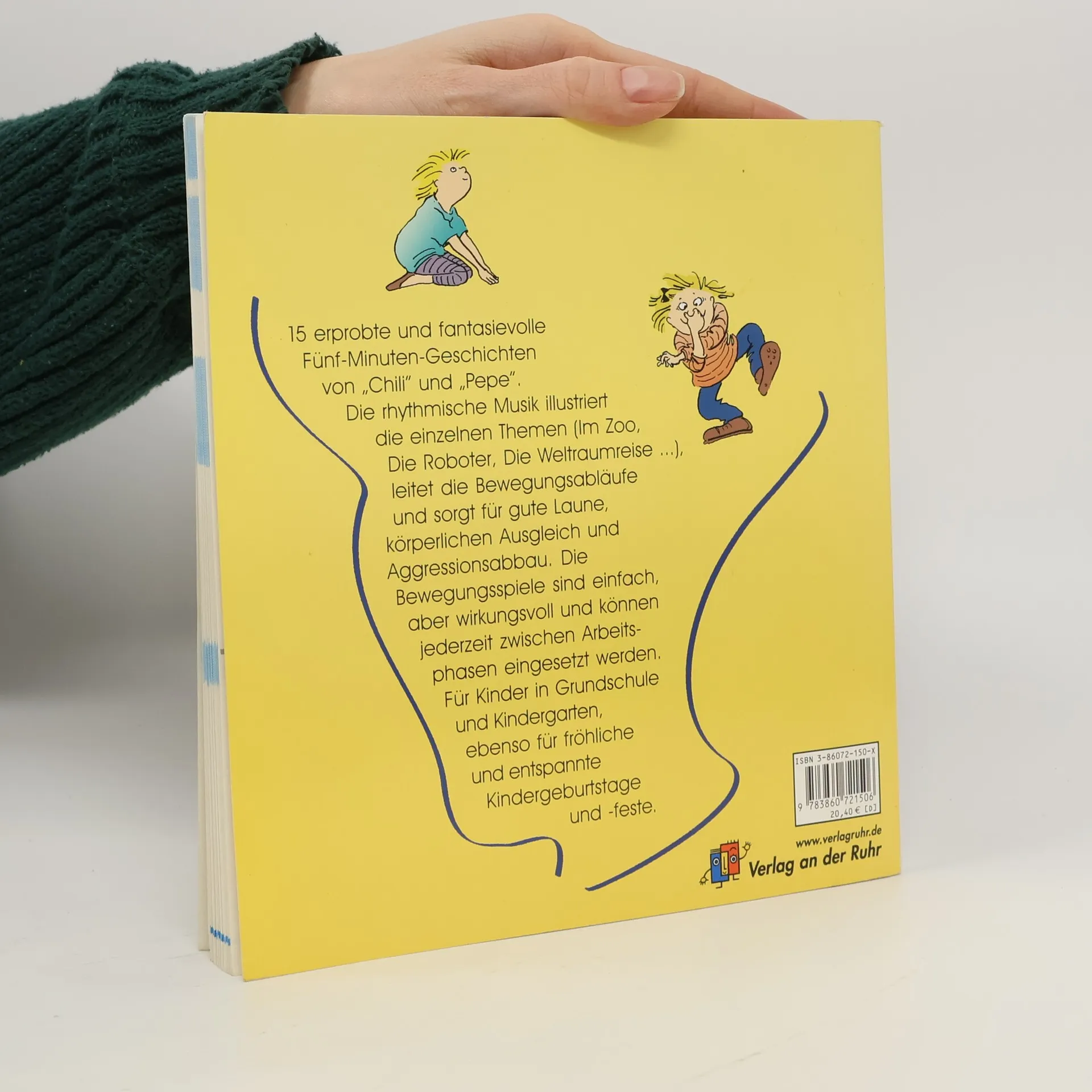 "Setz dich gerade hin! Zappel nicht so! Wollt ihr wohl ruhig an eurem Platz bleiben?" Im schulischen Alltag des Sitzunterrichts ist das Sich-Bewegen zumeist nicht erwünscht. Aber nicht nur Fernsehkids oder hypermotorischen Kindern fällt das Sitzen in der Schule schwer - alle Kinder rebellieren gegen die unselige Allianz von Sitzen und Lernen. Gefragt sind Unterrichtsideen, die das Recht und die Lust des Kindes auf Bewegung und Ausgleich aufgreifen. "Bewegen und Entspannen nach Musik" bietet 15 erprobte und fantasievolle Fünf-Minuten-Geschichten von "Chili" und "Pepe". Die rhythmische Musik illustriert die einzelnen Themen (Im Zoo, Die Roboter, Die Weltraumreise u.v.m.), leitet die Bewegungsabläufe und sorgt für gute Laune und Ausgleich. Die Spiele sind einfach, aber wirkungsvoll und sind während des Unterrichts jederzeit einsetzbar. Geeignet für Grundschule, Kiga und zu Hause. (amazon.de)