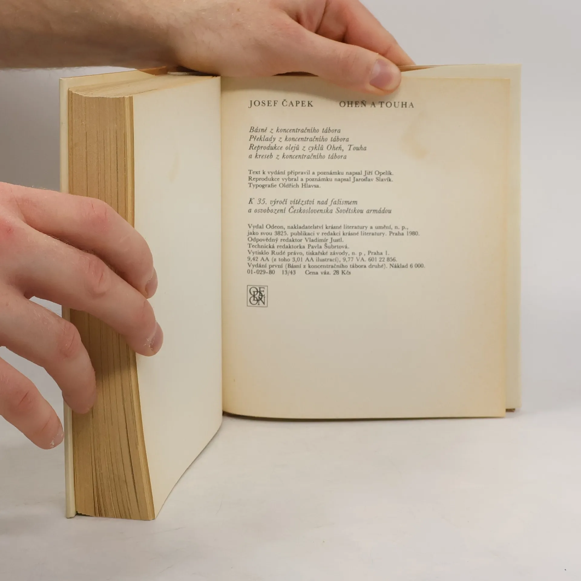 Čapkovy básně a překlady z koncentračního tábora, jeho obrazy z válečné doby - reprodukce olejů z cyklů Oheň, Touha a kreseb z koncentračního tábora. Text k vydání připravil a poznámku napsal Jiří Opelík. Reprodukce vybral a poznámku napsal Jaroslav Slavík.