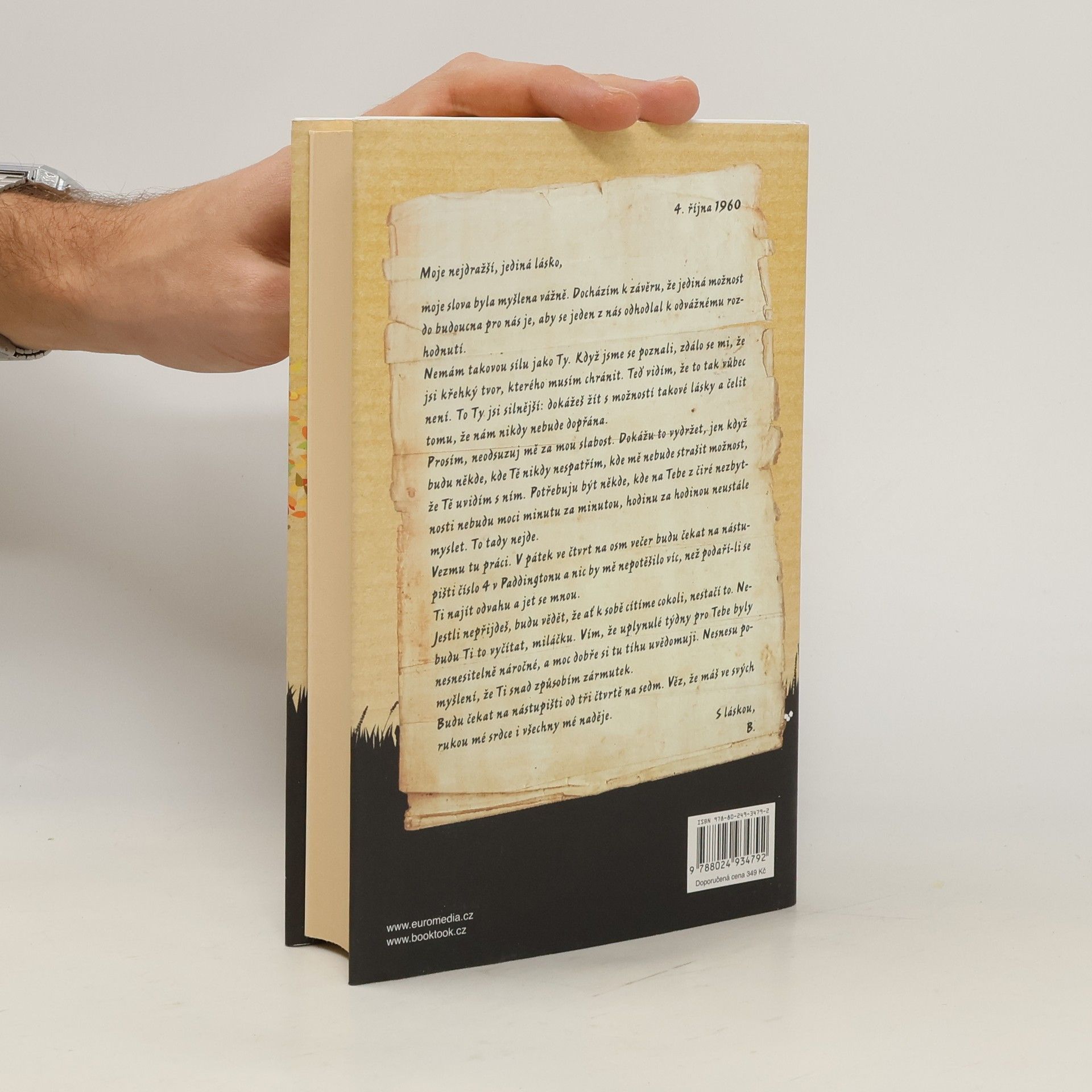 Mimořádně silný příběh vášně, nevěry a ztráty z pera respektované britské autorky Jojo Moyesové, který získal v roce 2011 prestižní ocenění The Romantic Novel of the Year Award. Novinářka Elllie při pátrání v archivu narazí na půlstoletí starý dopis, v němž neznámý muž žádá svoji milenku, aby opustila manžela. Elllie příběh, skrývající se za dopisem, okamžitě zaujme – i ona sama má poměr se ženatým mužem. Rok 1960. Jennifer Stirlingová leží v nemocnici po vážné autonehodě a na nic si nepamatuje – na manžela, na své kamarády, ani na to, jaká byla ona sama. Když se však vrátí z nemocnice domů a najde tajný dopis, pomalu se začíná rozpomínat na milence, kvůli kterému byla kdysi ochotná riskovat úplně všechno.