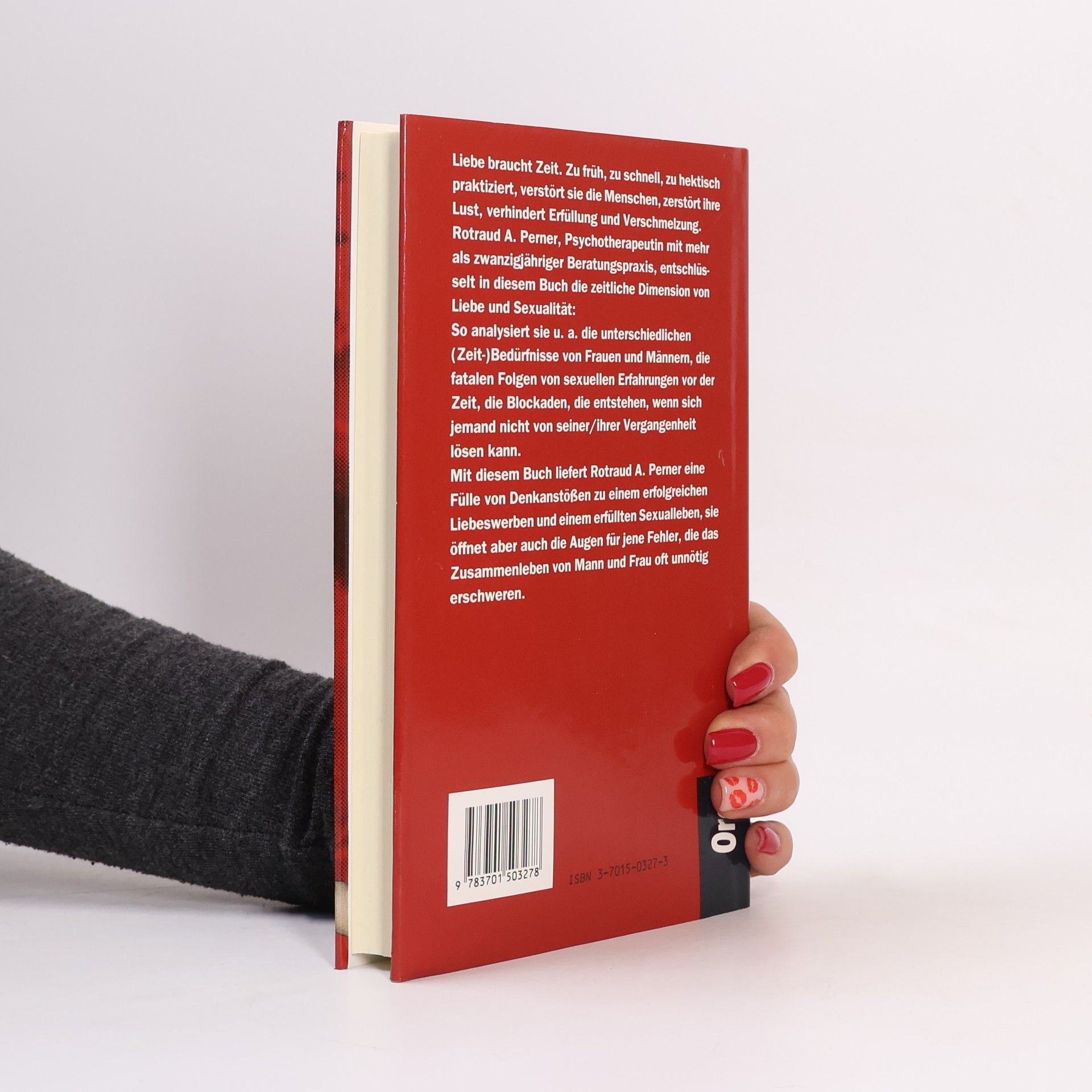 Liebe braucht Zeit. Zu früh, zu schnell, zu hektisch praktiziert, verstört sie die Menschen, zerstört ihre Lust, verhindert Erfüllung und Verschmelzung. Rotraud A. Perner, Psychotherapeutin mit mehr als zwanzigjähriger Beratungspraxis, entschlüsselt in diesem Buch die zeitliche Dimension von Liebe und Sexualität: So analysiert sie u. a. die unterschiedlichen (Zeit-)Bedürfnisse von Frauen und Männern, die fatalen Folgen von sexuellen Erfahrungen vor der Zeit, die Blockaden, die entstehen, wenn sich jemand nicht von seiner/ihrer Vergangenheit lösen kann. Mit diesem Buch liefert Rotraud A. Perner eine Fülle von Denkanstößen zu einem erfolgreichen Liebeswerben und einem erfüllten Sexualleben, sie öffnet aber auch die Augen für jene Fehler, die das Zusammenleben von Mann und Frau oft unnötig erschweren.