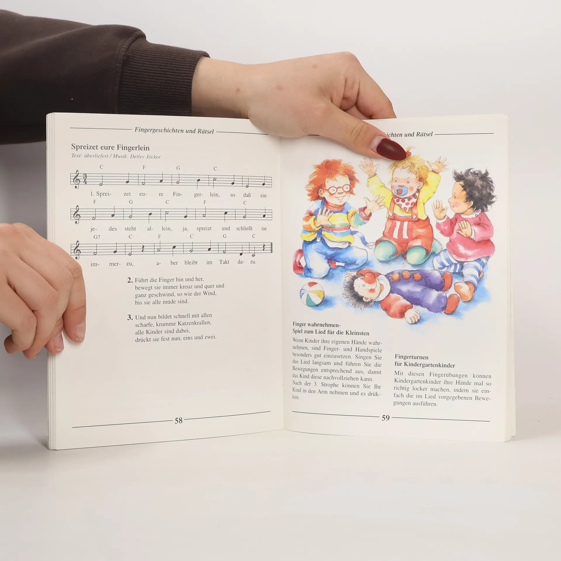 Ich bin der kleine Zappelmann LiederSpieleBuch für Kinder von 0 bis 5 Jahren Neue Finger- und Körperspiellieder, die spielerisch die ganzheitliche Entwicklung der Kinder fördern. Für das liebevolle Miteinander zwischen Kindern und Erwachsenen. Originell und zeitgemäß. Themen: Krabbeln, Schmusen, Wickeln, Waschen, Anziehen, Essen, Aufwachen, Einschlafen, Trösten, Fingerkennenlernen Lieder: Ich bin der kleine Zappelmann Erst kommt der Sonnenkäferpapa Ganz langsam fährt der Omnibus Ich streichel dich ein bißchen Immer geht das Segelboot Die große Schlange Dibbe dibbe dibb Müde ist die Krabbelschneck´ Aufgewacht, du süße Maus Osterhäschen, komm ganz schnell Pick, pick, pick, so macht das Huhn Zwerg Wackelmütze Der Hopppelhas´ Ein Elefant will bummeln gehn Schweinchen fett und Schweinchen dick Spreizet eure Fingerlein Seht, das ist mein Gesicht Ein Rätsel muß man raten Ich bring`die Post Dies ist der Daumen Knudeldick