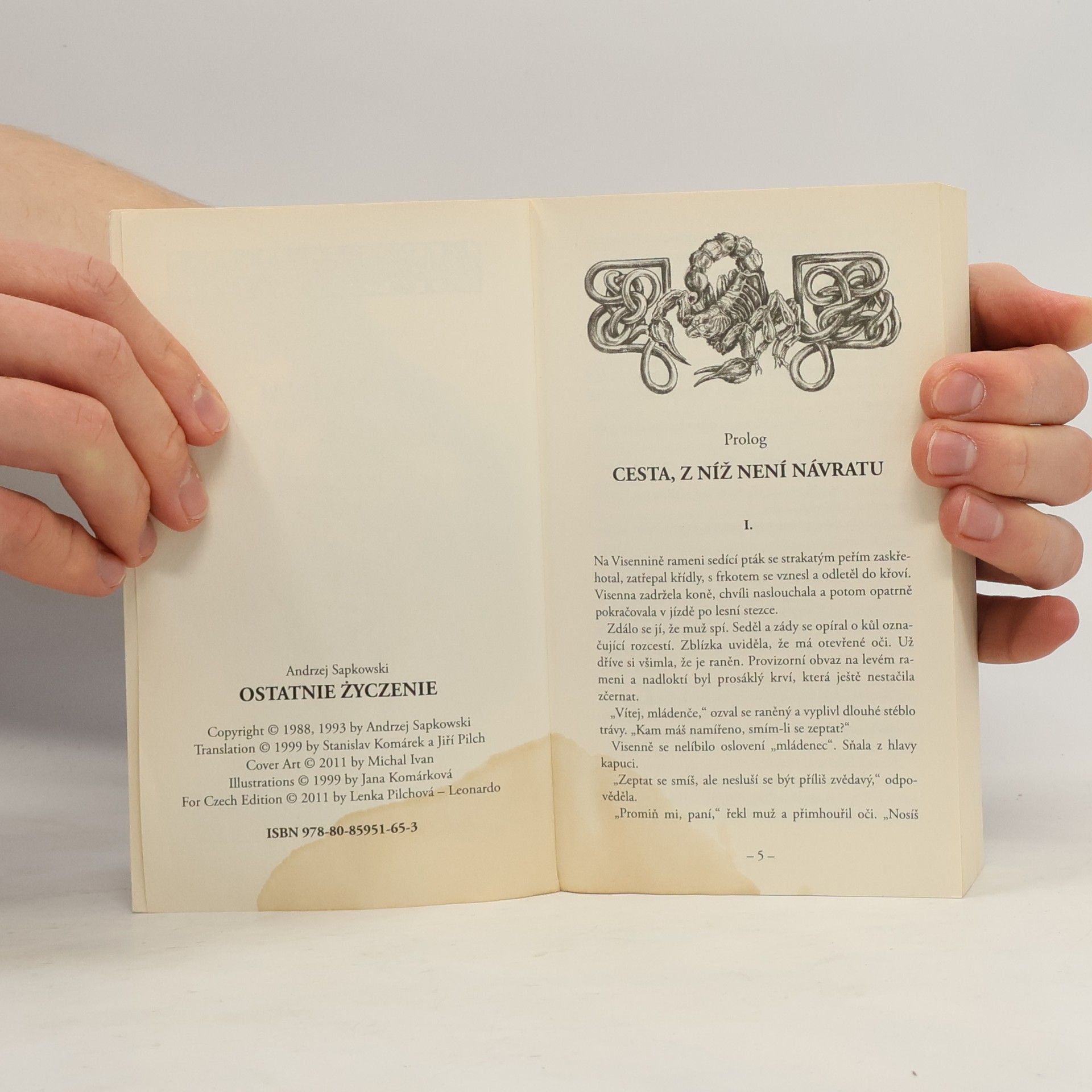 Zaklínač... Ošlehaný muž bez věku, jehož bílé vlasy nejsou znakem stáří, ale mutace, kterou musel podstoupit. Placený i dobrovolný likvidátor prapodivných tvorů – mantichor, trollů, vidlohonů, strig, amfisbain – pokud ovšem ohrožují lidský rod; v takovém případě zabíjí i bytost zvanou člověk. Prvotřídní, skvělý bojovník, který není neporazitelný ani nezranitelný – naopak, téměř z každého dobrodružství si odnáší další šrámy na těle i na duši. Nově přeložené geraltovské povídky ze Stříbrného meče, něco z Věčného ohně a Meče osudu, doplněné povídkou Hlas rozumu, kde Geralt vysvětluje, jak to všechno začalo. Povídky: - Cesta, z níž není návratu (Droga, z której się nie wraca) - Hlas rozumu (Głos rozsądku) - Zaklínač (Wiedźmin) - Zrnko pravdy (Ziarno prawdy) - Menší zlo (Mniejsze zło) - Otázka ceny (Kwestia ceny) - Konec světa (Kraniec świata) - Poslední přání (Ostatnie życzenie)