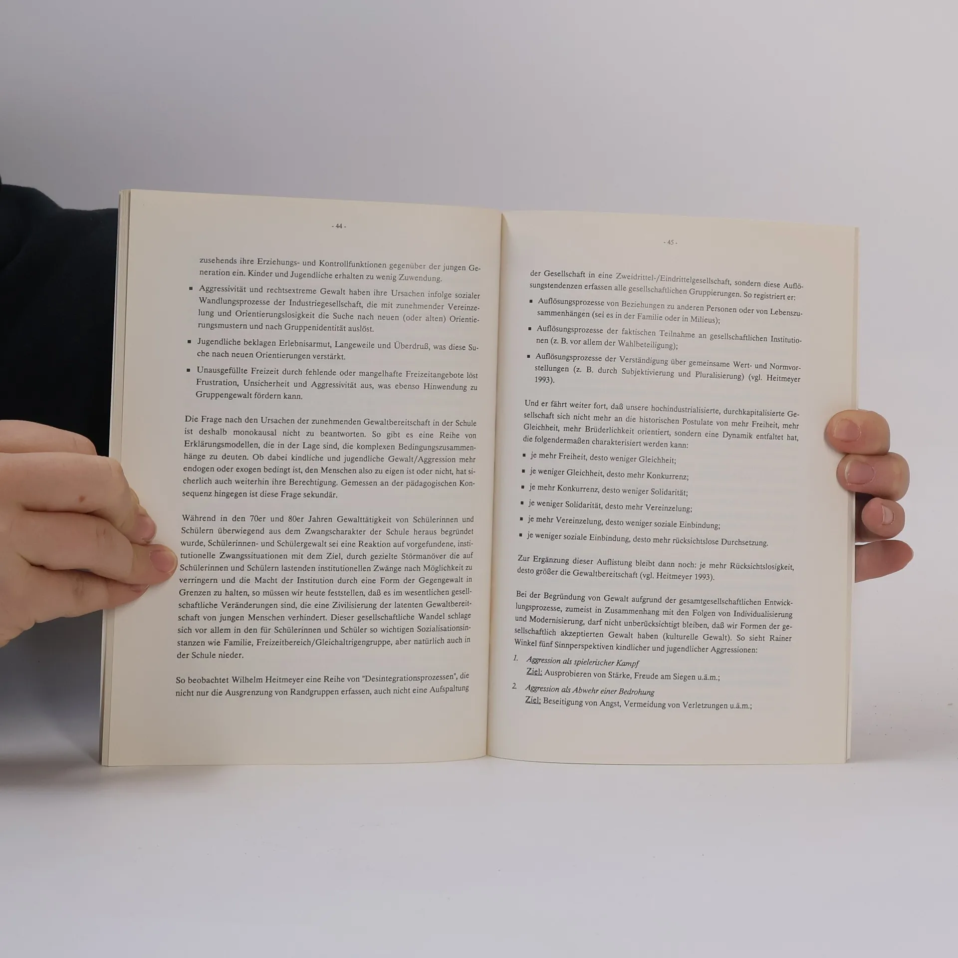 Dieses Buch will sich dem Problem der Gewalt in der Schule zunächst dadurch nähern, dass es sich mit verschiedenen Aspekten des Gewaltbegriffs auseinandersetzt. Dabei soll deutlich werden, dass unsere Gesellschaft über keinen klaren Gewaltbegriff verfügt. Danach werden empirische Untersuchungen über Ausmaße und Erscheinungsformen von Gewalttätigkeiten in der Schule dargestellt. Im Anschluß daran soll auf Ursachen von Gewalthandlungen eingegangen werden, die von uns vor allem in Familie und Schule gesehen werden. Abschließend sollen Lösungswege aufgezeigt werden, wie Schule kontruktiv auf Gewalttärigkeiten reagieren kann