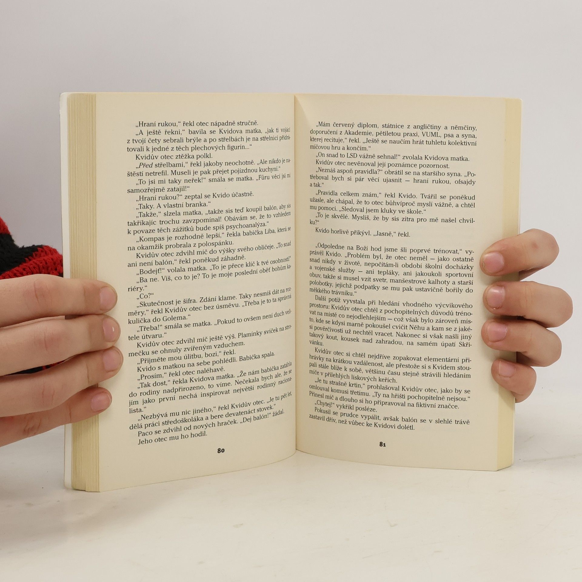 Nové vydání mimořádně úspěšné knihy nejčtenějšího českého spisovatele, za niž Michal Viewegh získal Cenu Jiřího Ortena. Román byl přeložen do několika světových jazyků, zfilmován a několikrát zdramatizován. Děj se odehrává v Praze a v městečku Sázava. V autobiografickém příběhu chlapce Kvida je líčen příběh rodiny, která se pokouší utéci před politickými tlaky nastupující normalizace z Prahy do městečka Sázava. Zde Kvido dospívá v mladého muže a díky své posedlosti s psaním se stává nejen svědkem, ale také posmutnělým i ironickým kronikářem kompromisních vzestupů i nekompromisních pádů ostatních rodinných příslušníků, zvláště pak svého otce, který je nejrozporuplnější postavou příběhu.