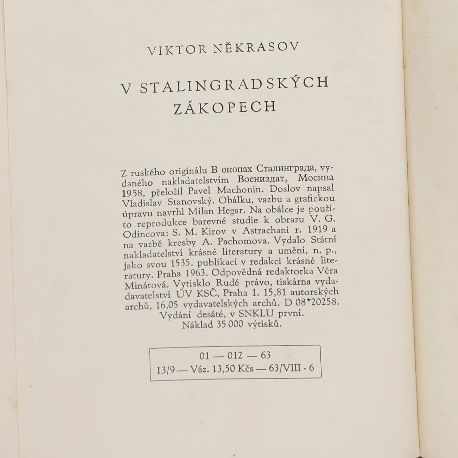 Von V Stalingradských zákopech (1963) sind aktuell auf Lager verfügbar.