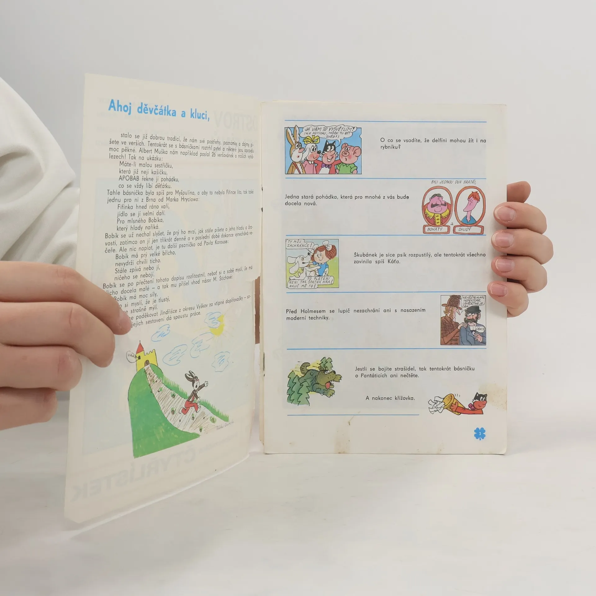 Obsahuje též: O boháči a chuďasovi - Jiří Tichý, Jan Tománek; Káťa a Škubánek - Pletení - Libuše Koutná, Josef Lamka, Věra Marešová; Sherlock Holmes a případ podivného houbaře - Rudolf Čechura, Marcel Stecker; V Pantáticích na návsi - Strašidelné povídání o strašipsu ze Strašnic - Pavel Šrut, Jiří Kalousek