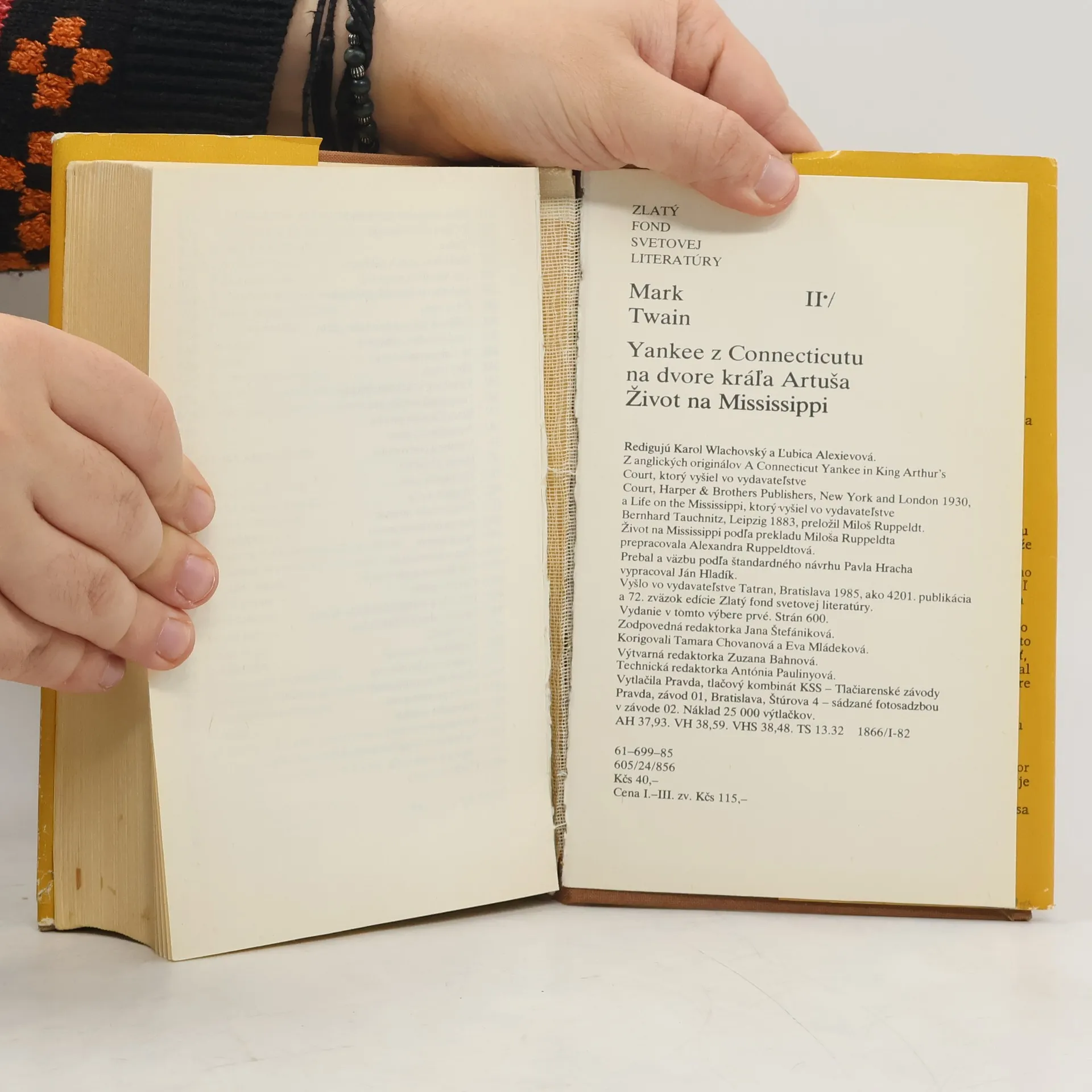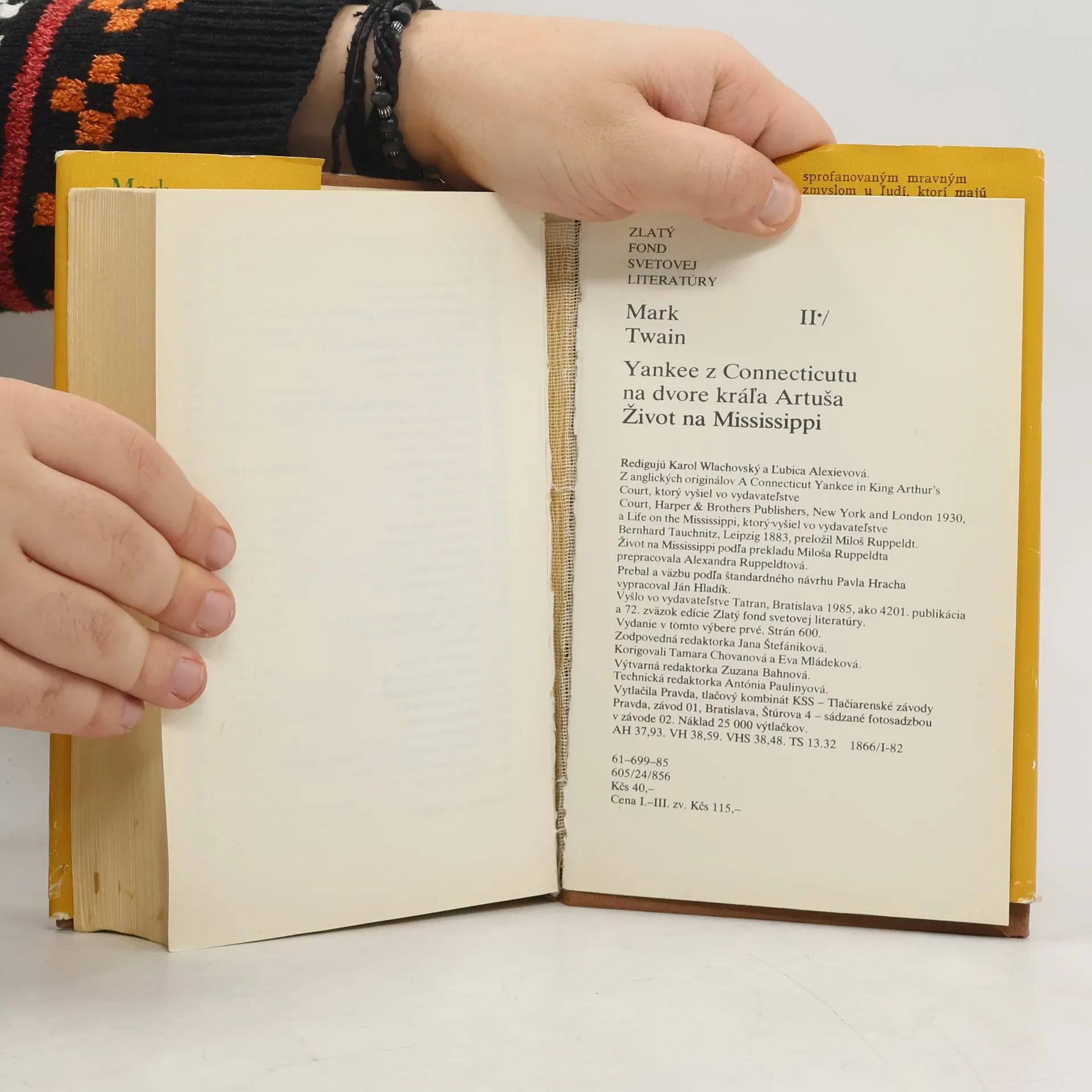 V románe Princ a bedár sa Twain opäť vracia do anglickej histórie, tentoraz do šestnásteho storočia. Hrdinami knihy sú chlapci rovnakého veku a rovnakého zovňajšku. Tom Canty sa však narodil v londýnskych slumoch a Eduard Tudor je následník anglického trónu. Zväzok obsahuje (v zátvorkách prekladateľky a prekladatelia): Princ a bedár (Tatiana Ruppeldtová) Tajomný cudzinec (Rudolf Koštial) Miliónová bankovka (Jana Štefániková) Zjednodušený pravopis (Viktor Krupa) Cena života a smrti (Jana Štefániková) List na Zem (Viktor Krupa) Ukradnutý biely slon (Jana Štefániková) Z nedokončenej burlesky o spoločenských lexikonoch (Viktor Krupa) Muž, ktorý skorumpoval Hadleyburg (Jana Štefániková) Monológ kráľa Leopolda (Jana Štefániková, verše Jana Kantorová-Báliková) Úryvok z rozprávania kapitána Stormfielda o návšteve v nebi (Jana Štefániková) Osobné spomienky na Janu z Arku (Katarína Steskálová, verše Jana Kantorová-Báliková) Chronológia života a diela Marka Twaina, teda Samuela Longhorna Clemensa od Viktora Krupu Poznámky a vysvetlivky: k Princovi a bedárovi od Marka Twaina, k poviedkam a Jane z Arku prekladatelia a Anton Vantuch Anotáciu na prebale vypracoval Viktor Krupa.