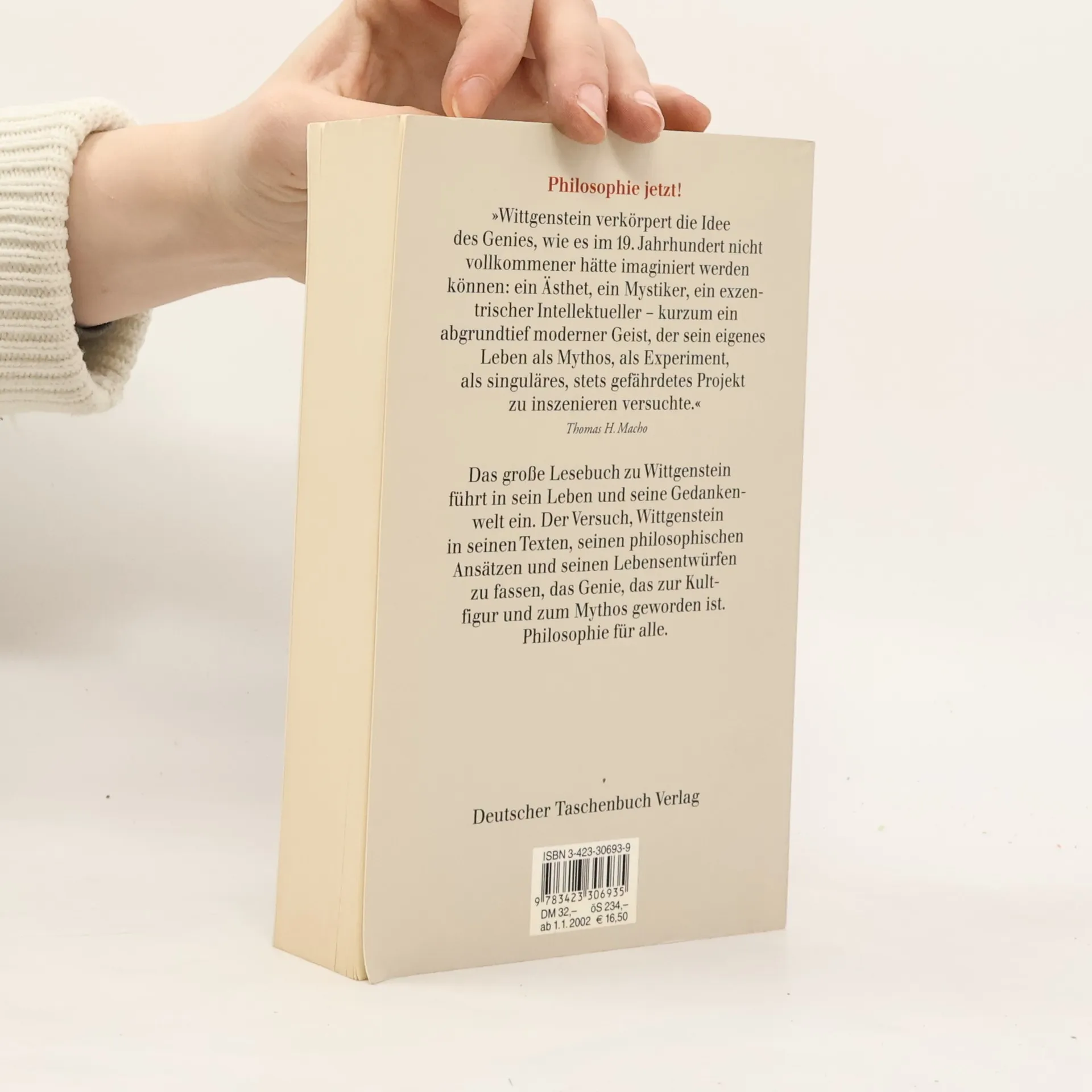 »Ein eigenwilliger Ästhet, ein Mönch mit asketischen Ambitionen und ein radikal exzentrisches Genie, oft nahe dem Selbstmord oder dem Wahnsinn« Ludwig Wittgenstein ist eine Ausnahmeerscheinung unter den Philosophen der westlichen Welt, und Thomas H. Macho behandelt ihn außergewöhnlich: Er hat um die prominenten Texte des Philosophen eine Vielzahl kleiner Abhandlungen und Notizen geschart, die schlaglichtartig erhellen, woran er sich gedanklich rieb: Sprache, Logik, Mathematik, Farben, Ethik, Religion, Literatur, Freud, Heidegger, Frazer ... Macho setzt die Punkte miteinander in Beziehung, dringt radikal in die Biographie Wittgensteins ein, präsentiert ihn in einem dichten, tiefen Text, indem er ihn kongenial perspektivistisch zu ergreifen sucht.