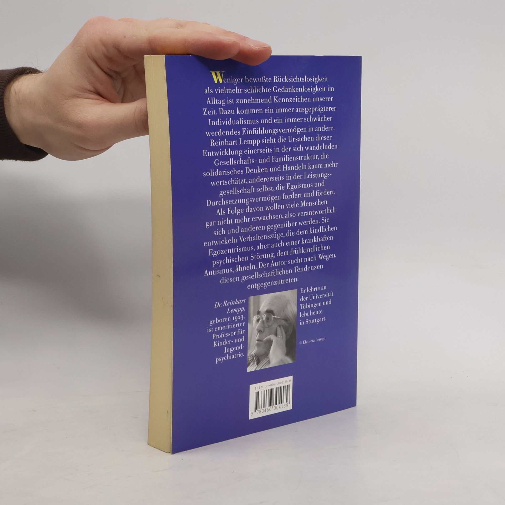 Die heutige Leistungsgesellschaft fordert - und fördert - Egoismus und Durchsetzungsvermögen, die Struktur von Familie und Gesellschaft verändert sich dahingehend, daß solidarisches Denken und Handeln immer mehr an Wert verlieren. Unsere Zeit kennzeichnet ein zunehmender Individualismus, der zu Gedankenlosigkeit oder auch Rücksichtslosigkeit im täglichen Umgang mit anderen führt. Das Ergebnis ist nach Reinhart Lempp eine "autistische Gesellschaft", die das notwendige Erwachsenwerden des einzelnen und damit das gesamte gesellschaftliche Miteinander gefährdet.