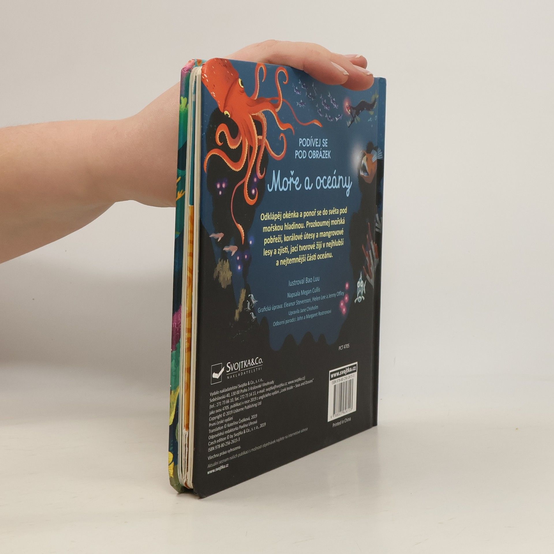 V mořích teplých i ledových žije nespočet zajímavých tvorů, o nichž člověk nemá ani ponětí. Seznamte se s nimi v této krásně ilustrované knížce s okénky. Ponořte se do podvodního světa plného úžasných, pestrobarevných tvorů. V tomto mořském království na vás čeká nespočet překvapení. Objevte je v této knížce s více než 50 odklápěcími okénky. Prozkoumejte pobřeží, korálové útesy, mangrovové lesy a zjistěte, kdo žije v těch nejhlubších částech oceánu, kam ani sluneční paprsky neproniknou... České vydání publikace nakladatelství Usborne