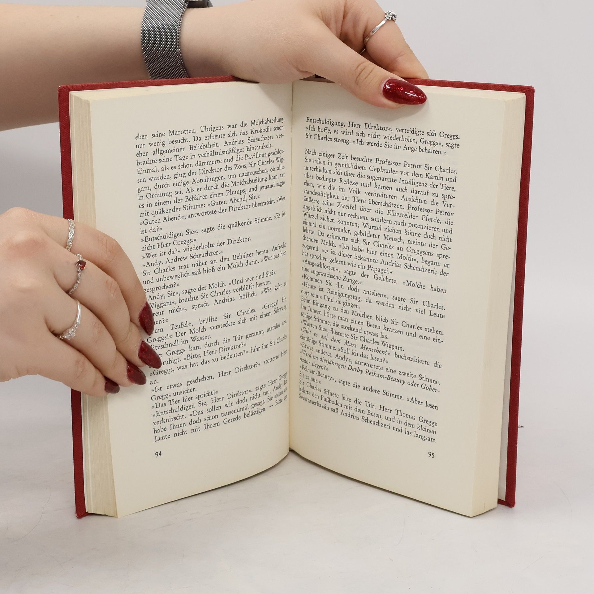 Lange blieben sie der Welt verborgen: Sprachbegabte Riesenmolche: den Menschen sehr ähnlich. Zunächst als billige Arbeitskräfte missbraucht, wenden sie sich schließlich gegen ihre Ausbeuter. Ein Krieg um die Weltherrschaft beginnt … Hans Ticha hat das Werk auf allen Ebenen durchgestaltet, seine virtuose Typographie spielt mit dem formalen Erscheinungsbild der Texte. Zu seiner bekannten Bildsprache tritt eine Feuerwerk an Illustrationen der unterschiedlichsten Stilrichtungen: Zitate von Pop-Art, wissenschaftlich anmutende Zeichnungen auf braunem Fond und Bildrasterpunkte, die gedruckte Quellen suggerieren. Entstanden ist „eines der schönsten Bücher der deutschen Buchgeschichte, das dem polyphonen Anspielungsreichtum des Romans kongenial entspricht“, so Florian Balke von der FAZ.