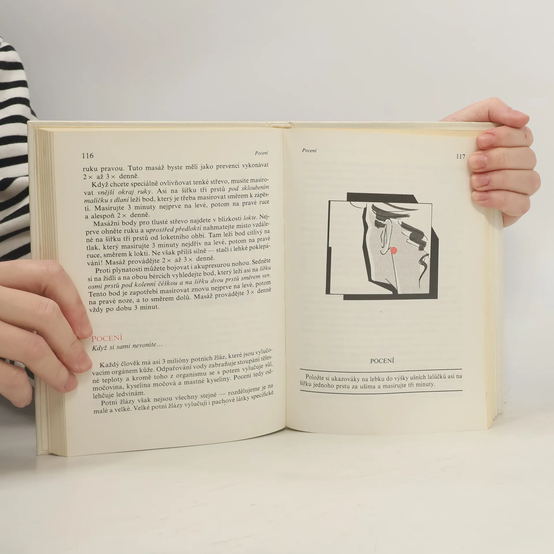 Utišuje bolesti bez léků. Akupresura,cílená tlaková masáž pomocí prstů, vychází ze skušeností nstarých čínských lékařů, kteří jí s úspěchem používali k utišení bolestí při různých chorobách a léčebných zákrocích.Je prověřena praxí trvající déle než 5000 let. V současnosti se stala účinným prostředkem samoléčby a je proto nanejvýš potřebná.Dokážete jí zvládnout i vy, když budete mít po ruce tuto praktickou knížku.Pomůže vám snadno a bez léků úspěšně čelit častým onemocněním a zdravotním potížím, zlepšit fyzickou a psychickou výkonnost a nabýt dobré nálady a sebevědomí.