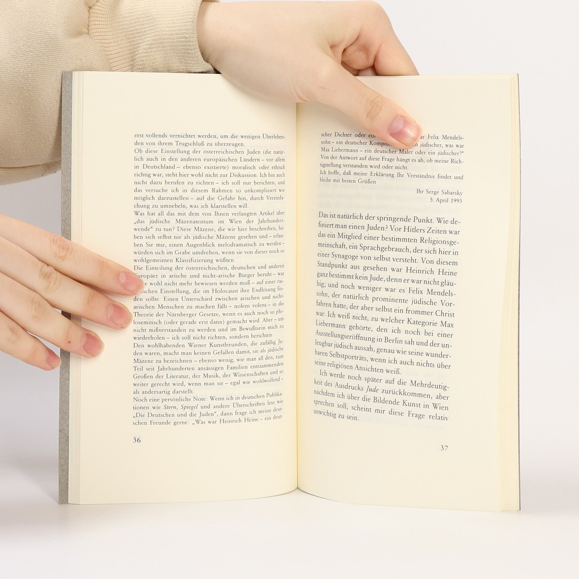 Ernst H. Gombrich verwirft den Begriff der jüdischen Kultur. Das Konzept jüdischer Kunst, so zeigt er, gründet sich keinesfalls auf dem Selbstverständnis der Künstler. Es sei vielmehr ein Produkt derer, die die Kunst und Literatur von Künstlern jüdischen Glaubens oder jüdischer Herkunft diffamieren wollten: „. das Konzept einer jüdischen Kultur ist eine Erfindung Hitlers und seiner Vorläufer und Nachfahren". Diese Fremddefinition führt Ernst H. Gombrich auf die Verschiebung sozialer Hierarchien im Übergang von der Feudalherrschaft zum Kapitalismus zurück. Weil Juden der Landbesitz versagt war, nahmen sie als erste die sozialen Schlüsselpositionen in Handel und Finanzwesen ein. Erst dadurch wurden sie - vor ihrer Herkunft und ihrer Nationalität - als Juden wahrgenommen. So gelingt es Ernst H. Gombrich, den jüdischen Mythos zugunsten eines humanistischen Denkens zu dekonstruieren.