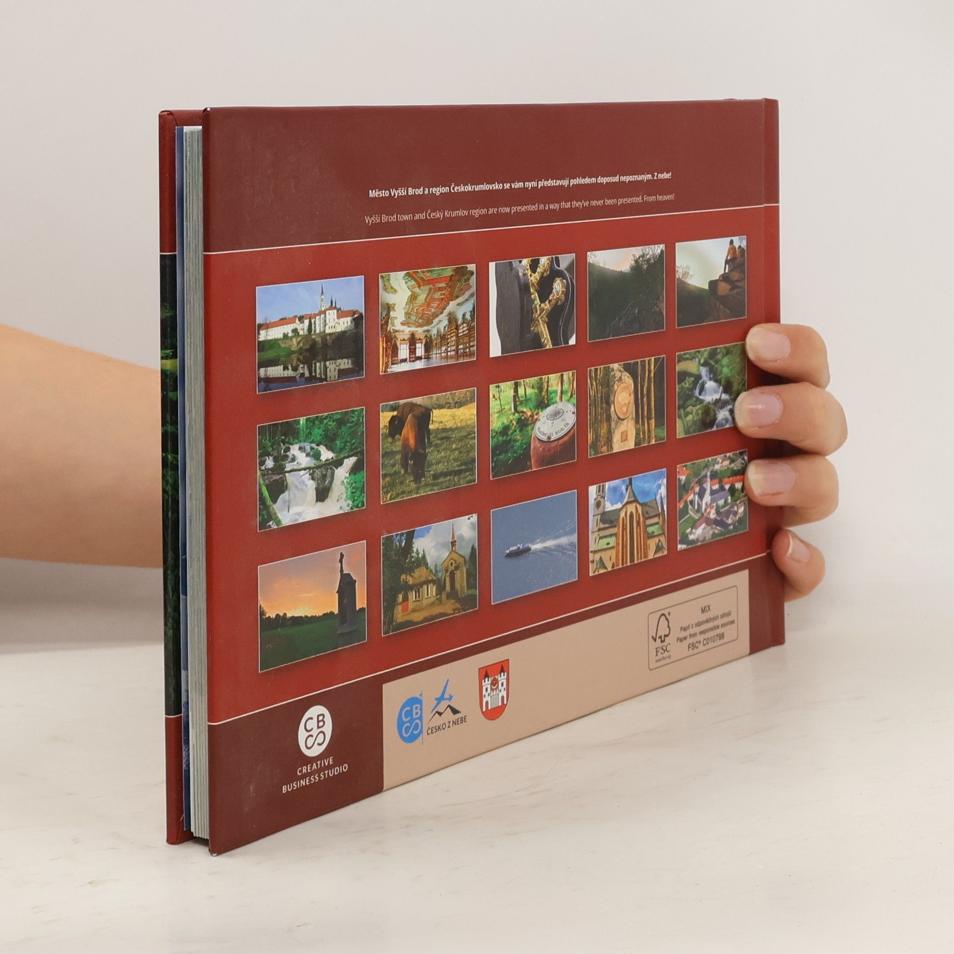 Český Krumlov ležící v nejjižnějším cípu republiky má návštěvníkům opravdu co nabídnout. Největším skvostem regionu je unikátní architektonický a urbanistický celek - město Český Krumlov, zapsaný od roku 1992 na seznamu světového přírodního a kulturního dědictví UNESCO. Českokrumlovský hrad a zámek je druhým největším v Čechách. Mimořádnou uměleckohistorickou hodnotu mají kláštery ve Zlaté Koruně a ve Vyšším Brodě. Přitažlivá je i jedna z největších hradních zřícenin v Čechách - Dívčí Kámen. Vodní nádrž Lipno a její okolí vybízí k pasivní i aktivní rekreaci. Nyní i vy můžete pomyslně brouzdat v nebesích nad tímto regionem listováním v knize. Na leteckých fotografiích najdete určitě mnoho míst, které možná dobře znáte, ale nyní se na tyto místa můžete podívat doslova "s nadhledem".