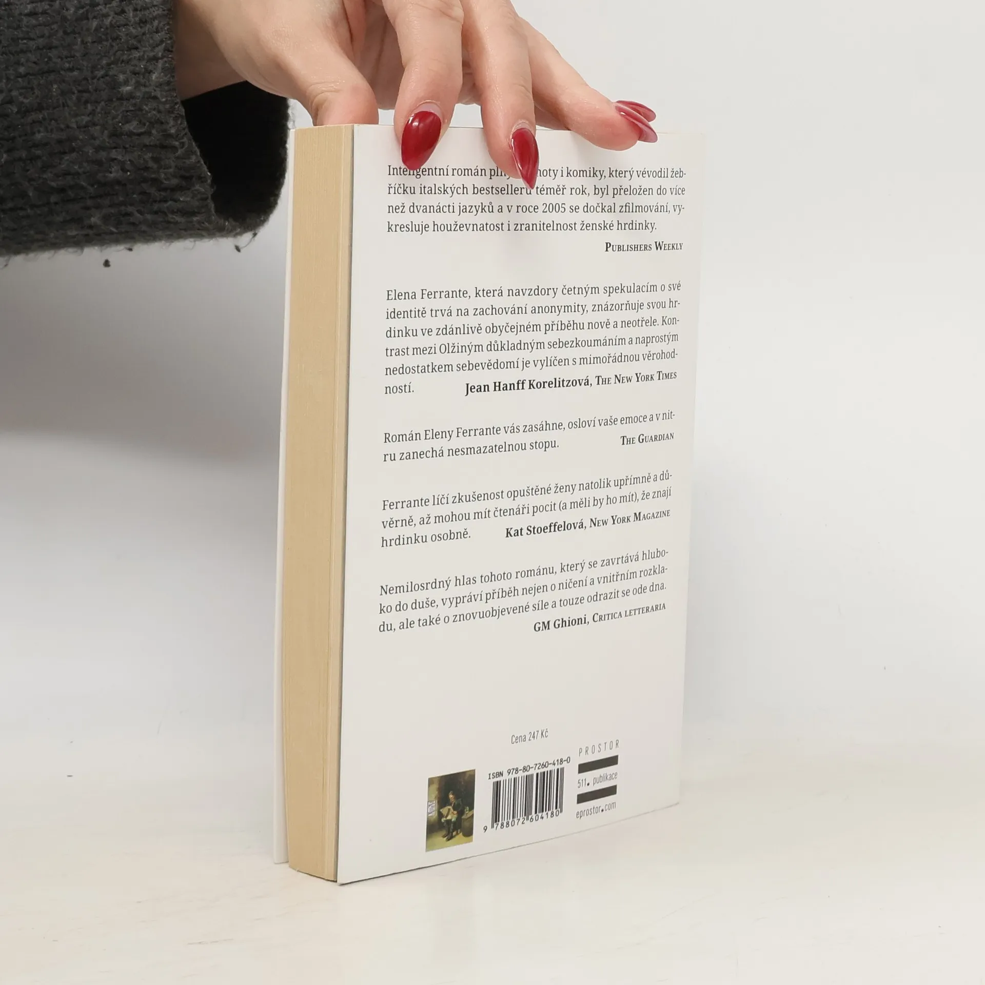 Román současné italské autorky, skrývající se pod pseudonymem, zachycuje příběh ženy středního věku, která se vyrovnává s krizovou životní situací. Ctižádostivou spisovatelku Olgu opouští náhle po patnácti letech manželství její muž Mario. Olgu zastihne tato událost zcela nepřipravenou a vzápětí se také negativně projeví na její psychice, jednání a chování. Prochází vlnou sebelítostných a hněvivých nálad, v nichž se střídají pochybnosti o smyslu života a zoufalé stavy, často dosahující až hranice sebevražedného šílenství. Kdysi úhledný a vlastně jednoduchý svět rodinné buňky se Olze nezadržitelně rozpadá a navíc se jí v paměti stále častěji vybavují temné vzpomínky z neapolského dětství, kdy na schodech činžovního domu, kde bydlela, potkávala ztrápenou ženu, jež po ztrátě partnera popřela veškerou vlastní identitu. Olga si uvědomuje, že takové nebezpečí hrozí i jí samotné, a proto se rozhodne s bezútěšnou situací bojovat...