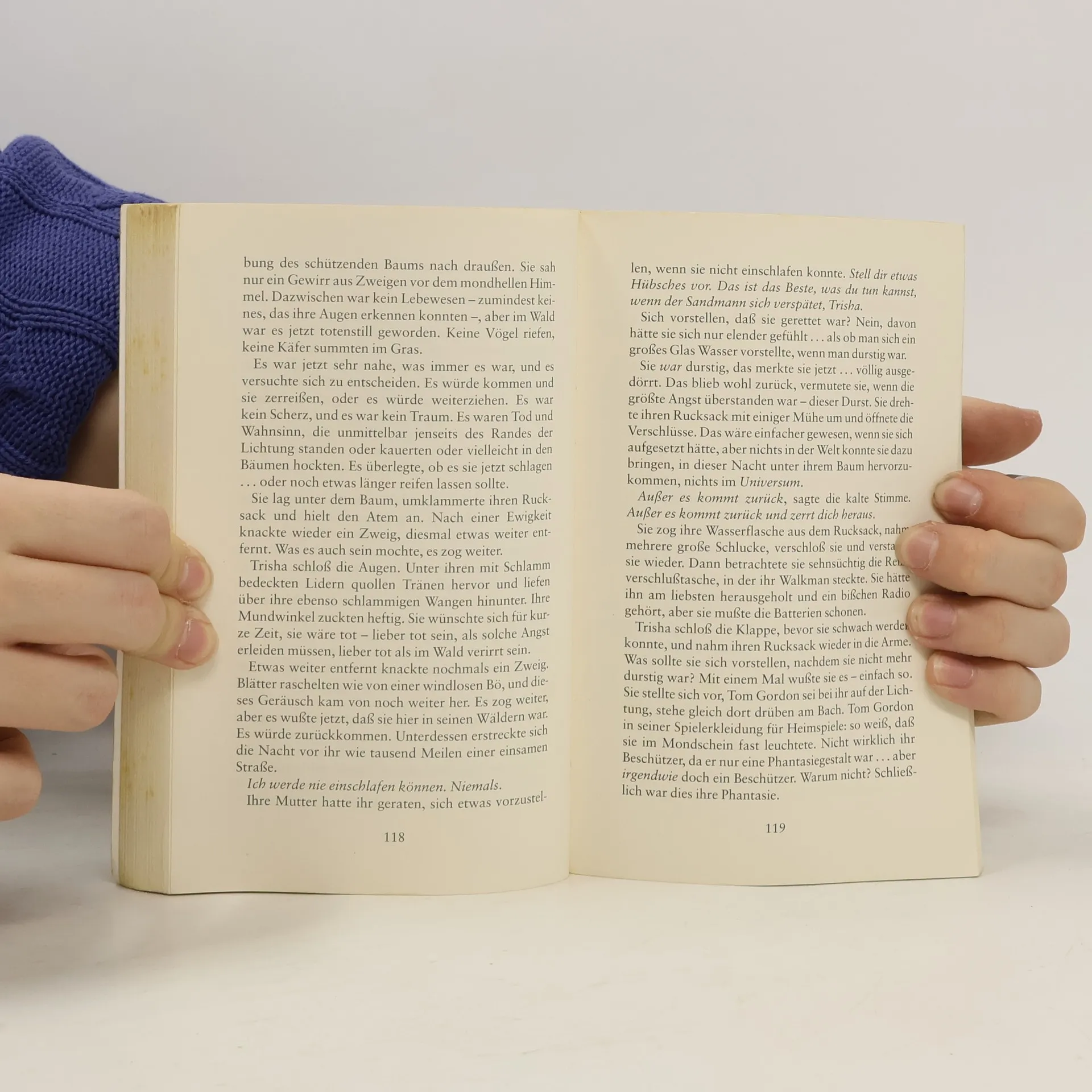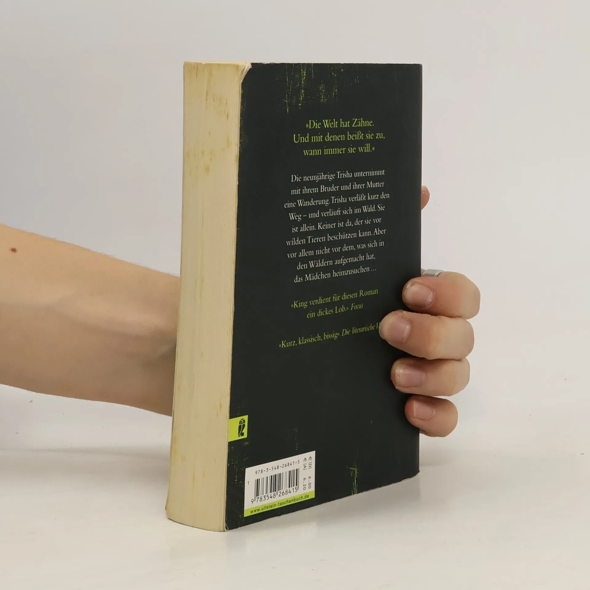 »Die Welt hat Zähne. Und mit denen beißt sie zu, wann immer sie will.« Die neunjährige Trisha unternimmt mit ihrem Bruder und ihrer Mutter eine Wanderung. Trisha verlässt kurz den Weg - und verläuft sich im Wald. Sie ist allein. Noch niemand hat bemerkt, dass sie verschwunden ist. Keiner ist da, der sie beschützen kann - vor Hunger und Durst, Mückenschwärmen und wilden Tieren, Einsamkeit und Dunkelheit. Aber vor allem nicht vor dem, was sich in den Wäldern aufgemacht hat, die Neunjährige heimzusuchen...