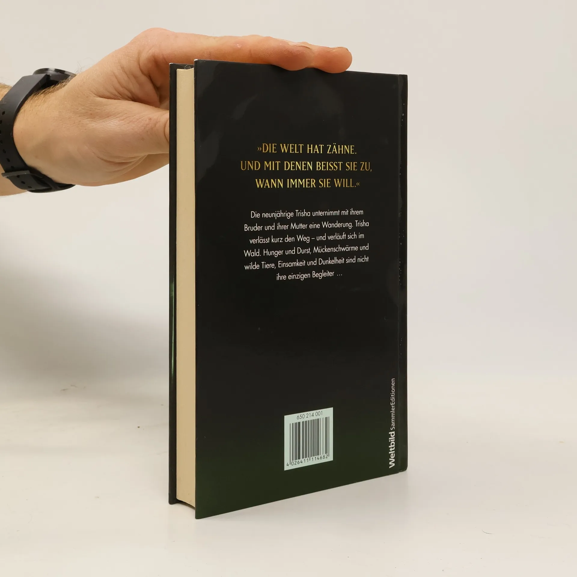 »Die Welt hat Zähne. Und mit denen beißt sie zu, wann immer sie will.« Die neunjährige Trisha unternimmt mit ihrem Bruder und ihrer Mutter eine Wanderung. Trisha verlässt kurz den Weg - und verläuft sich im Wald. Sie ist allein. Noch niemand hat bemerkt, dass sie verschwunden ist. Keiner ist da, der sie beschützen kann - vor Hunger und Durst, Mückenschwärmen und wilden Tieren, Einsamkeit und Dunkelheit. Aber vor allem nicht vor dem, was sich in den Wäldern aufgemacht hat, die Neunjährige heimzusuchen...