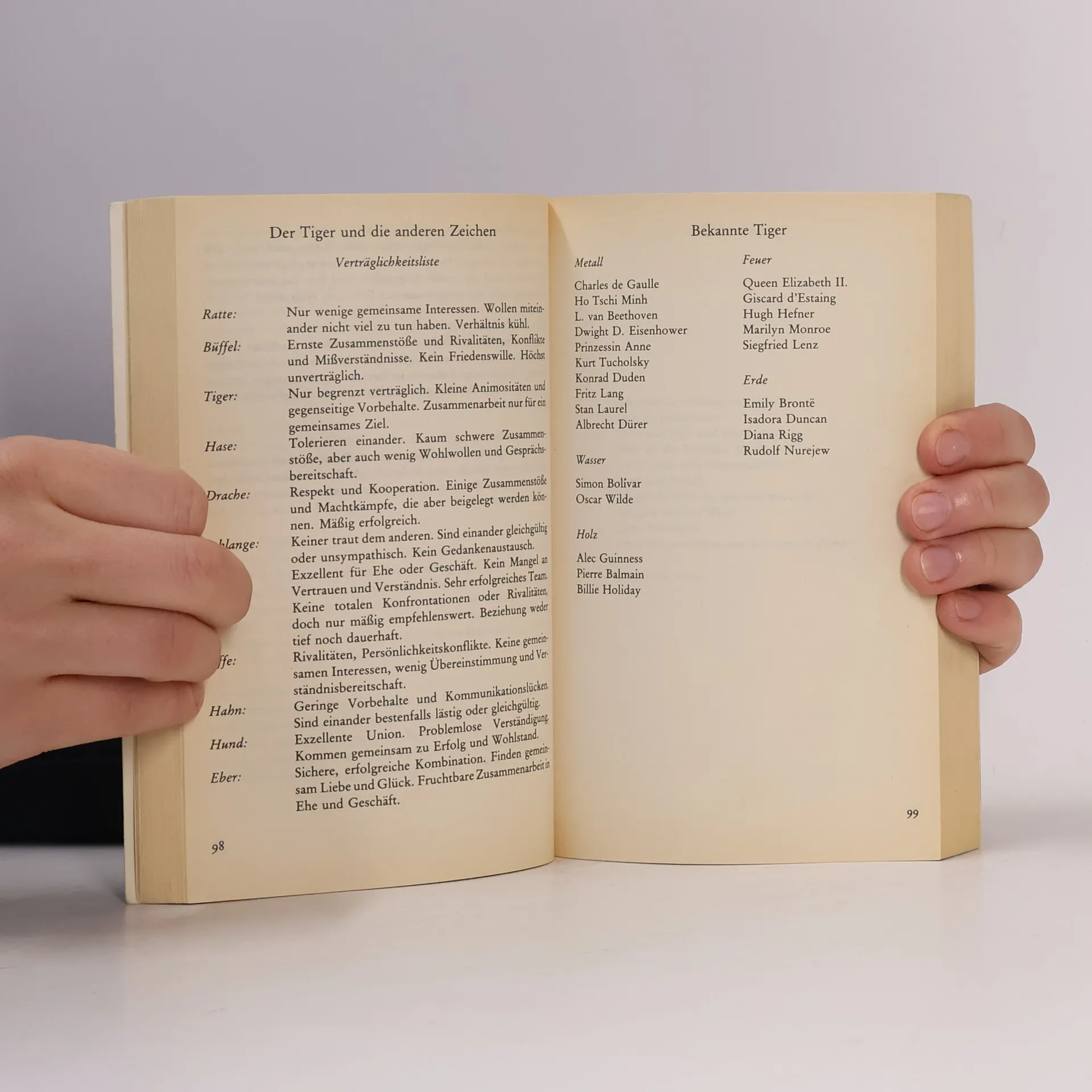 Theodora Lau gibt eine Einführung in die chinesische Astrologie und beschreibt auf detaillierte und äußerst unterhaltsame Weise alle 12 chinesischen Tierkreiszeichen sowie ihre jeweiligen Persönlichkeiten und die Einflüsse der fünf Elemente und Aszendenten. Ihr Buch nennt außerdem die möglichen Ehekombinationen zwischen den Jahrestieren sowie die unterschiedlichen Kombinationen aller westlichen Sonnenzeichen und der chinesischen Mondzeichen, wie z.B. Stier-Pferd, Zwillings-Büffel, Jungfrau-Tiger.