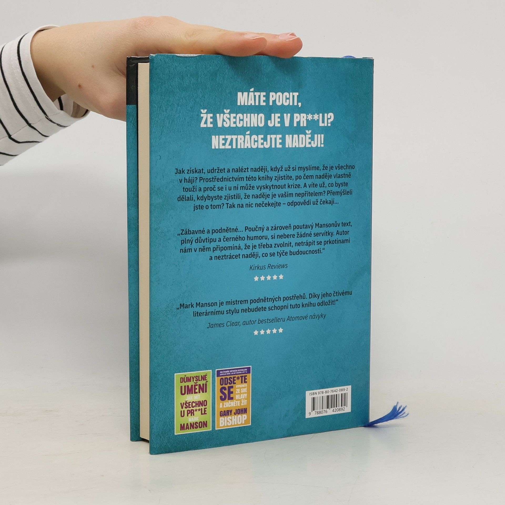 Máte problém ráno vstát z postele a večer naopak sůvíte dlouho do noci a jen tupě zíráte na televizi, kde vás tak maximálně dráždí nesmyslné reklamy? Nedaří se vám dosáhnout vytoužených snů? Honíte se za štěstím jako pes za svým ocasem? Nechápete, proč zrovna vy musíte mít neustálé konflikty s narcistickým šéfem? Máte se jako prase v žitě, ale i přesto nejste spokojeni? Neumíte jednat se svým dospělým puberťákem nebo dětinským protějškem? Neztrácejte naději. Přichází kniha, která se Vám pokusí odpovědět na zapeklité otázky. Ale slovy autora: „Neberte mě příliš vážně.“ Autor Mark Manson se ve svém pokračování knihy Důmyslné umění, jak mít všechno u prdele zaměřuje převážně na naději a vše, co se točí kolem ní. Jak ji získat, udržet a najít, když už si myslíme, že je všechno v háji. Zjistíte, po čem naděje vlastně touží a proč se i u ní může vyskytnout krize. A víte už, co byste dělali, kdybyste zjistili, že naděje je vaším nepřítelem? Přemýšleli jste o tom? Tak teď všeho nechte – odpovědi už čekají…