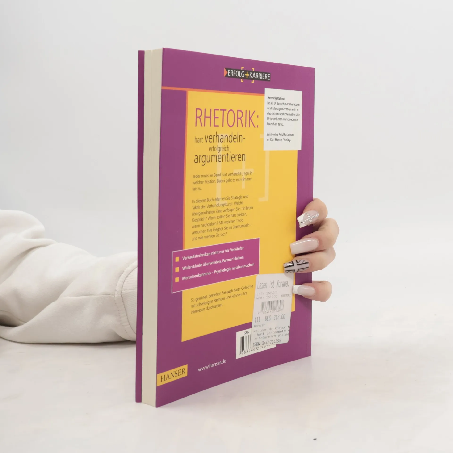 Jeder muss im Beruf hart verhandeln, egal in welcher Position. Dabei geht es nicht immer fair zu. In diesem Buch erlernen Sie Strategie und Taktik der Verhandlungskunst: Welche übergeordneten Ziele verfolgen Sie mit Ihrem Gespräch? Wann sollten Sie hart bleiben, wann nachgeben? Mit welchen Tricks versuchen Ihre Gegner Sie zu überrumpeln – und wie wehren Sie sich? So gerüstet, bestehen Sie auch harte Gefechte mit schwierigen Partnern und können Ihre Interessen durchsetzen. Highlights · Verkaufstechniken nicht nur für Verkäufer · Widerstände überwinden, Partner bleiben · Menschenkenntnis – Psychologie nutzbar machen Die Autorin Hedwig Kellner ist als Unternehmensberaterin und Managementtrainerin in deutschen und internationalen Unternehmen verschiedener Branchen tätig. Zahlreiche Publikationen im Carl Hanser Verlag.