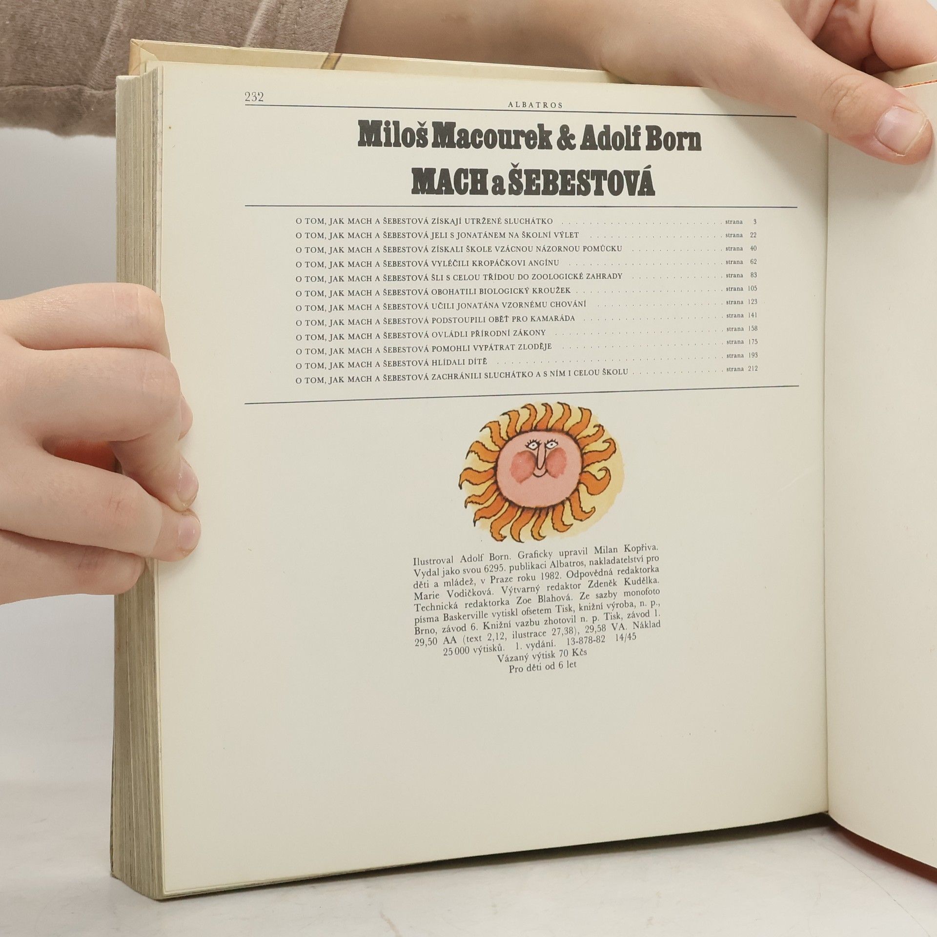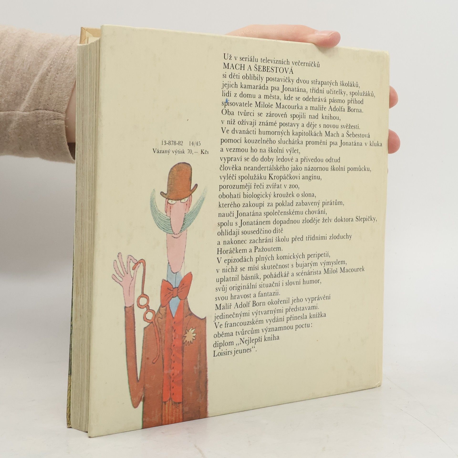 Příběhy oblíbených postaviček Macha, Šebestové a psa Jonatána. Dvanáct humorných kapitol se hlavní postavy pomocí kouzelného sluchátka podívají do doby ledové, přemění psa Jonatána na kluka a vezmou ho na školní výlet nebo pomohou spolužákovi Kropáčkovi s angínou. V epizodách plnýchkomických peripetií, v nichž se mísí skutečnost s bujarým výmyslem uplatnil básník , pohádkář a scénárista Miloš Macourek svůj originální situační i slovní humor, svou hravost a fantazii. Malíř Adolf Born okořenil jeho vyprávění jedinečnými výtvarnými představami.