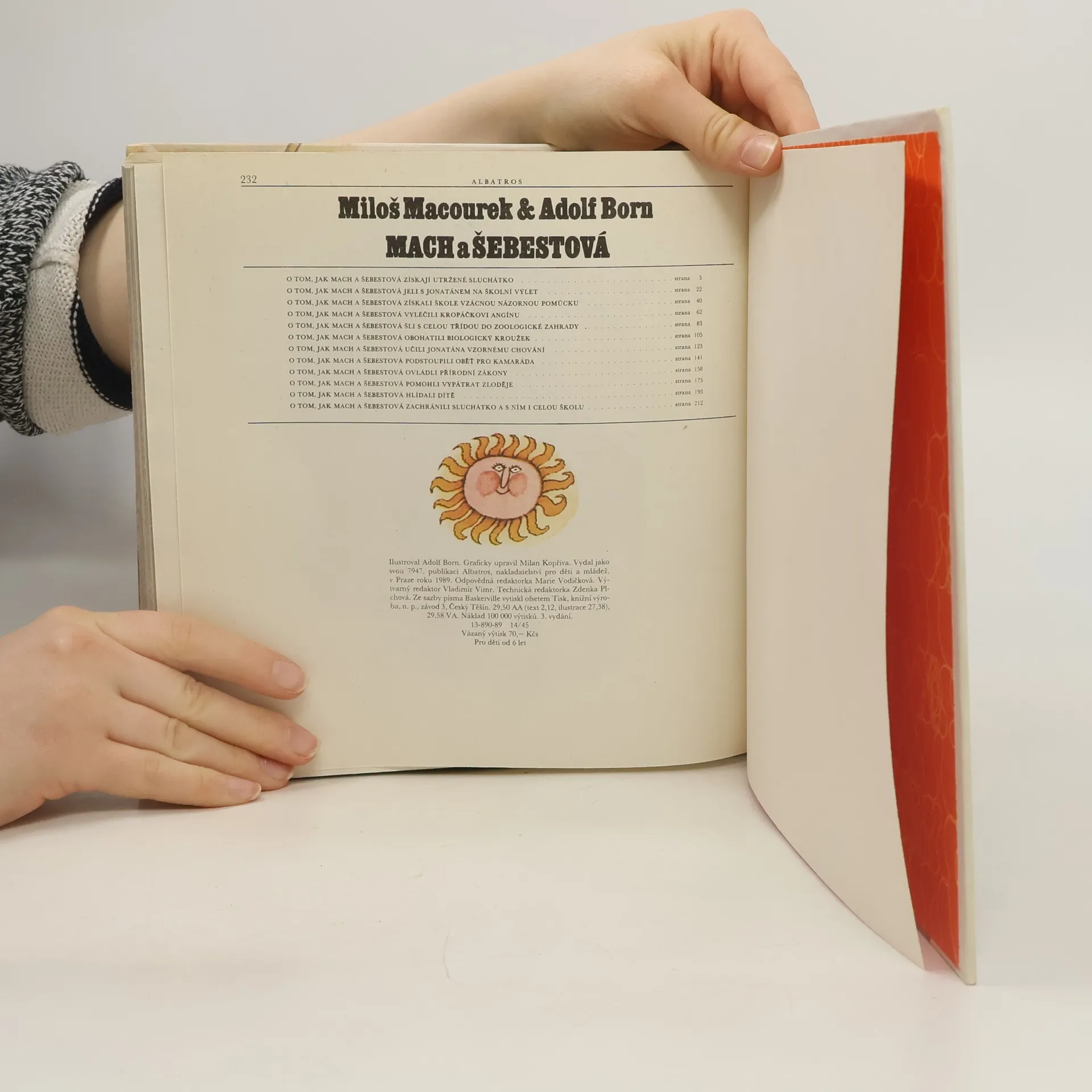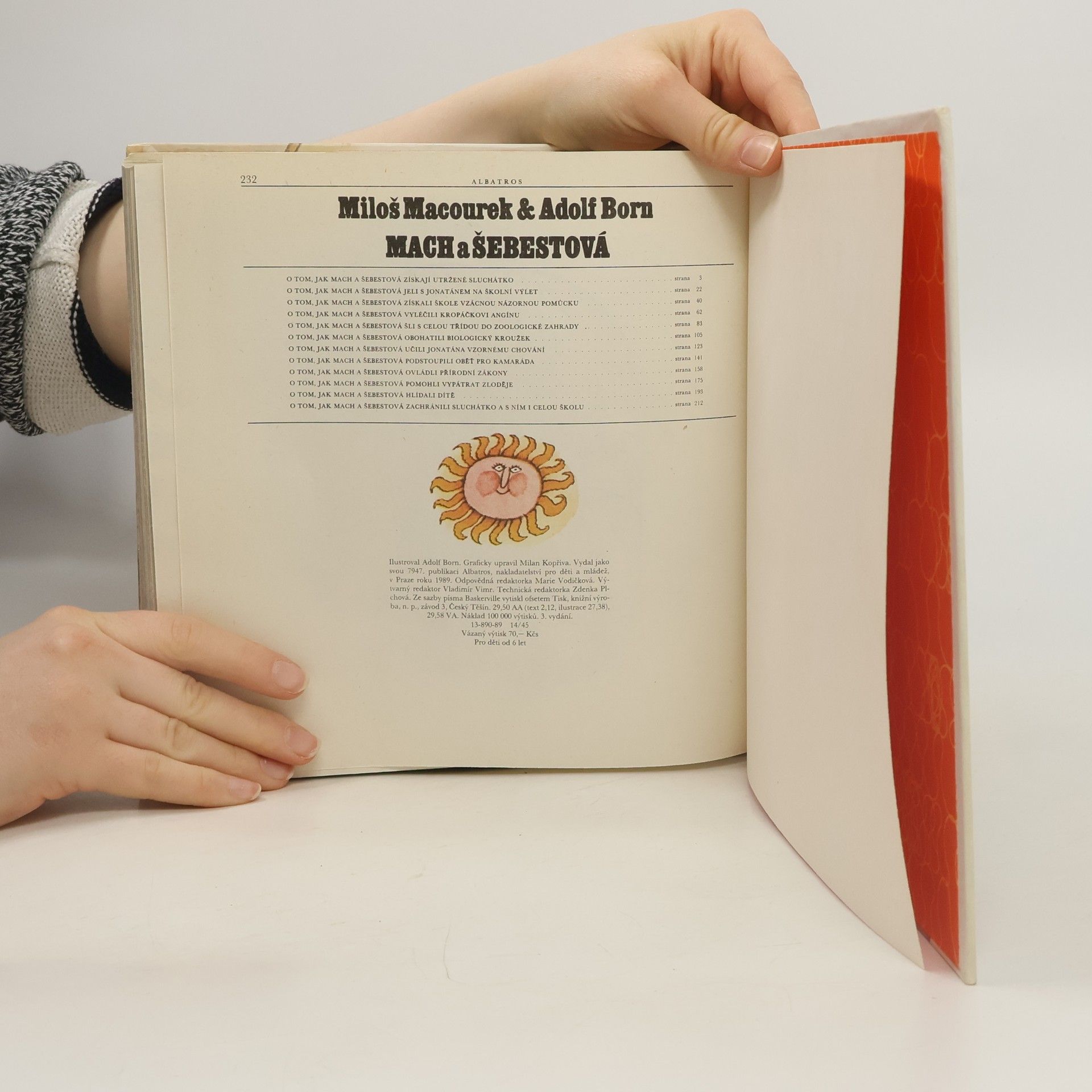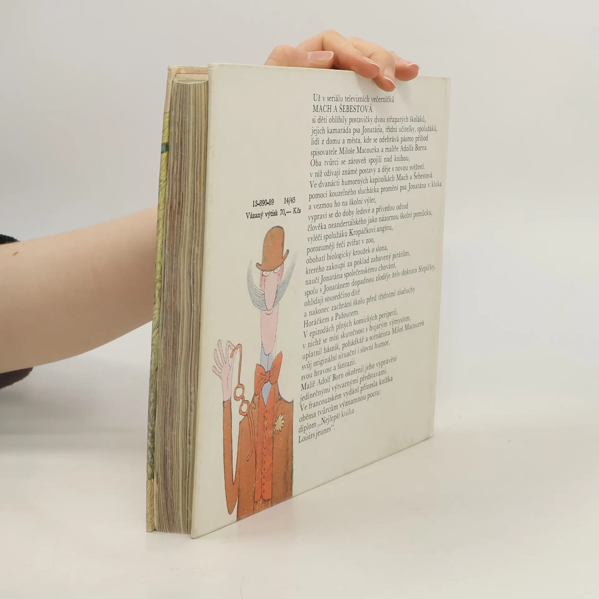 Příběhy oblíbených postaviček Macha, Šebestové a psa Jonatána. Dvanáct humorných kapitol se hlavní postavy pomocí kouzelného sluchátka podívají do doby ledové, přemění psa Jonatána na kluka a vezmou ho na školní výlet nebo pomohou spolužákovi Kropáčkovi s angínou. V epizodách plnýchkomických peripetií, v nichž se mísí skutečnost s bujarým výmyslem uplatnil básník , pohádkář a scénárista Miloš Macourek svůj originální situační i slovní humor, svou hravost a fantazii. Malíř Adolf Born okořenil jeho vyprávění jedinečnými výtvarnými představami.