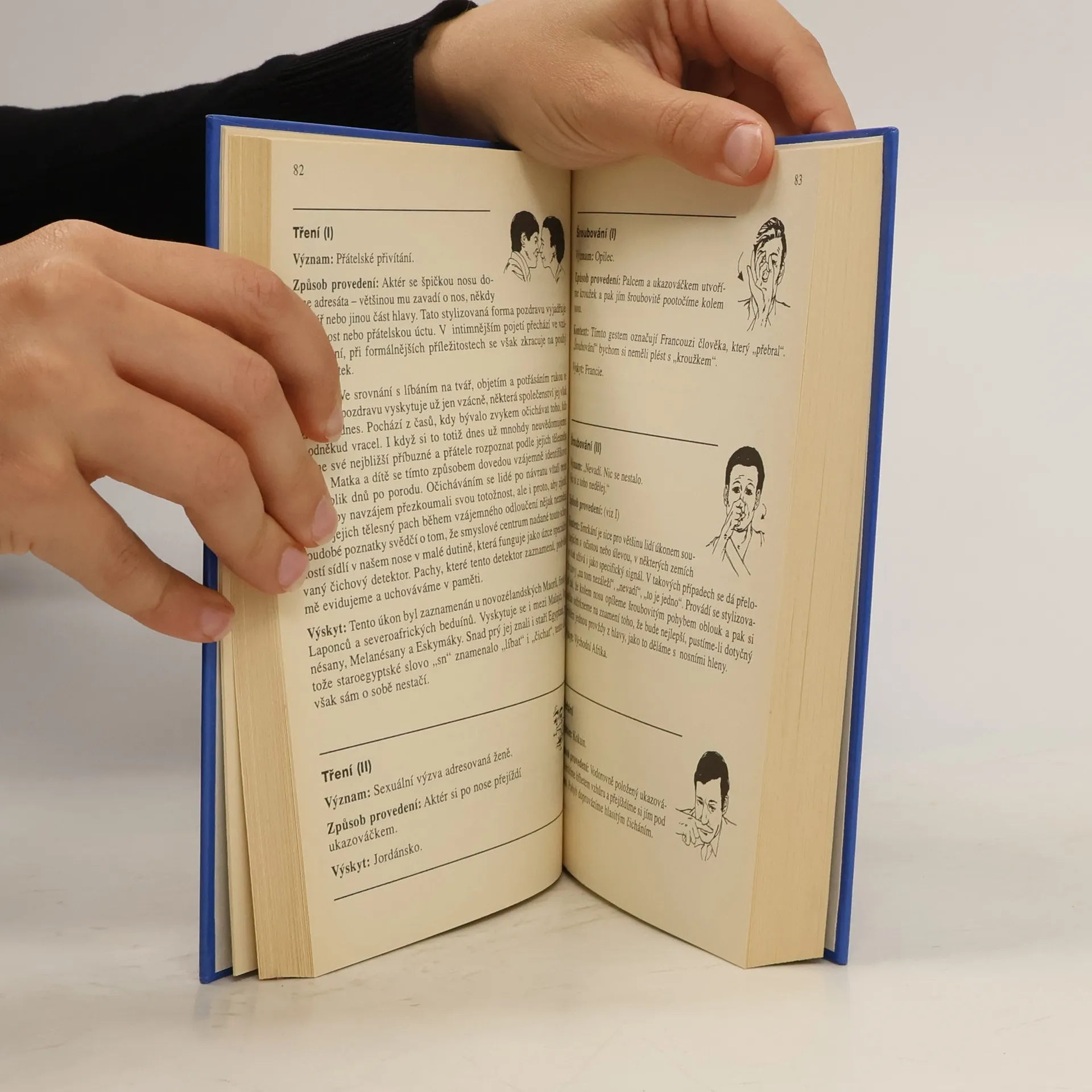 Tato nejúspěšnější encyklopedie mimoslovní komunikace v 654 heslech popisuje gesta, která my lidé používáme k vzájemnému dorozumívání. Autor procestoval přes 60 zemí a v této knize slovně i obrazem, stručně, výstižně a vtipně informuje nejen o tom, co jednotlivá gesta vědomá i podvědomá znamenají, ale i o jejich původu, společenských souvislostech, o jejich dějinných osudech a geografickém rozšíření.